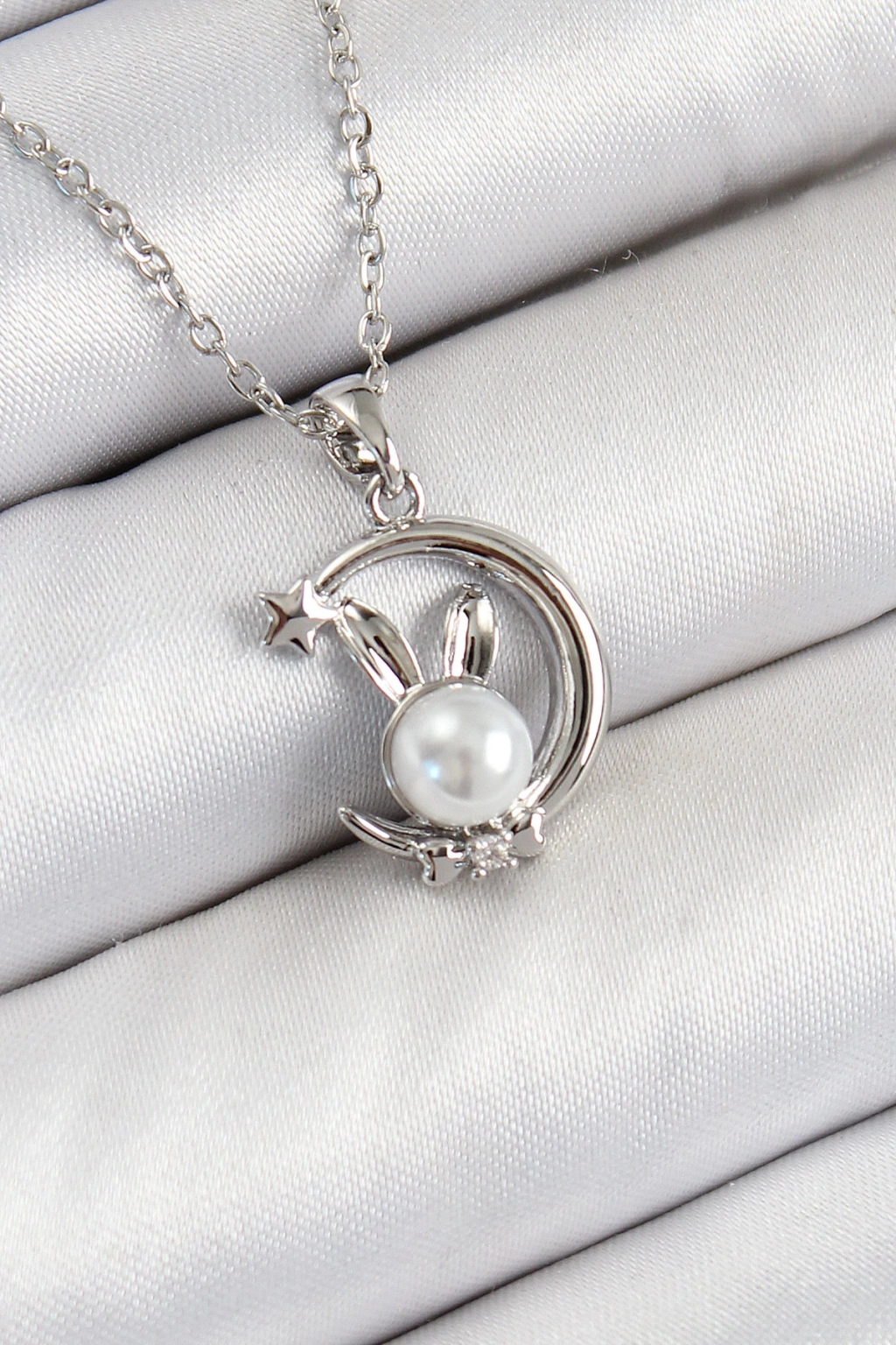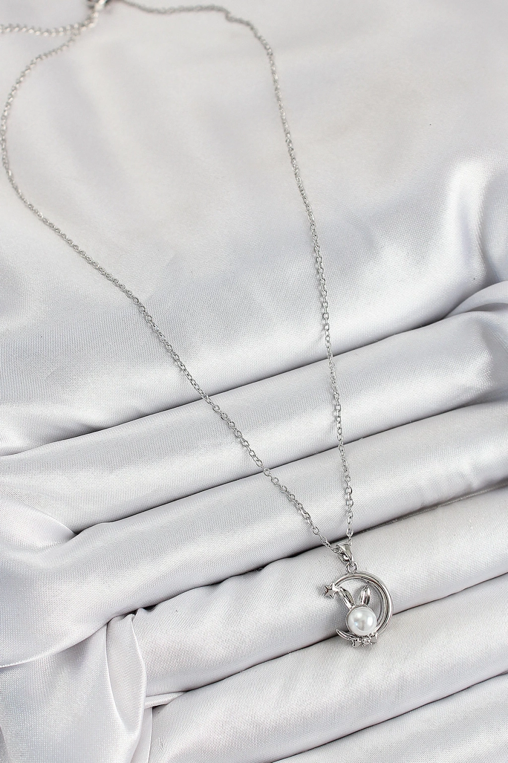Dodes Dodes 316L Çelik İnci Detaylı Hilal Tavşan Model Gümüş Renk Kadın Kolye TG27BKO10348