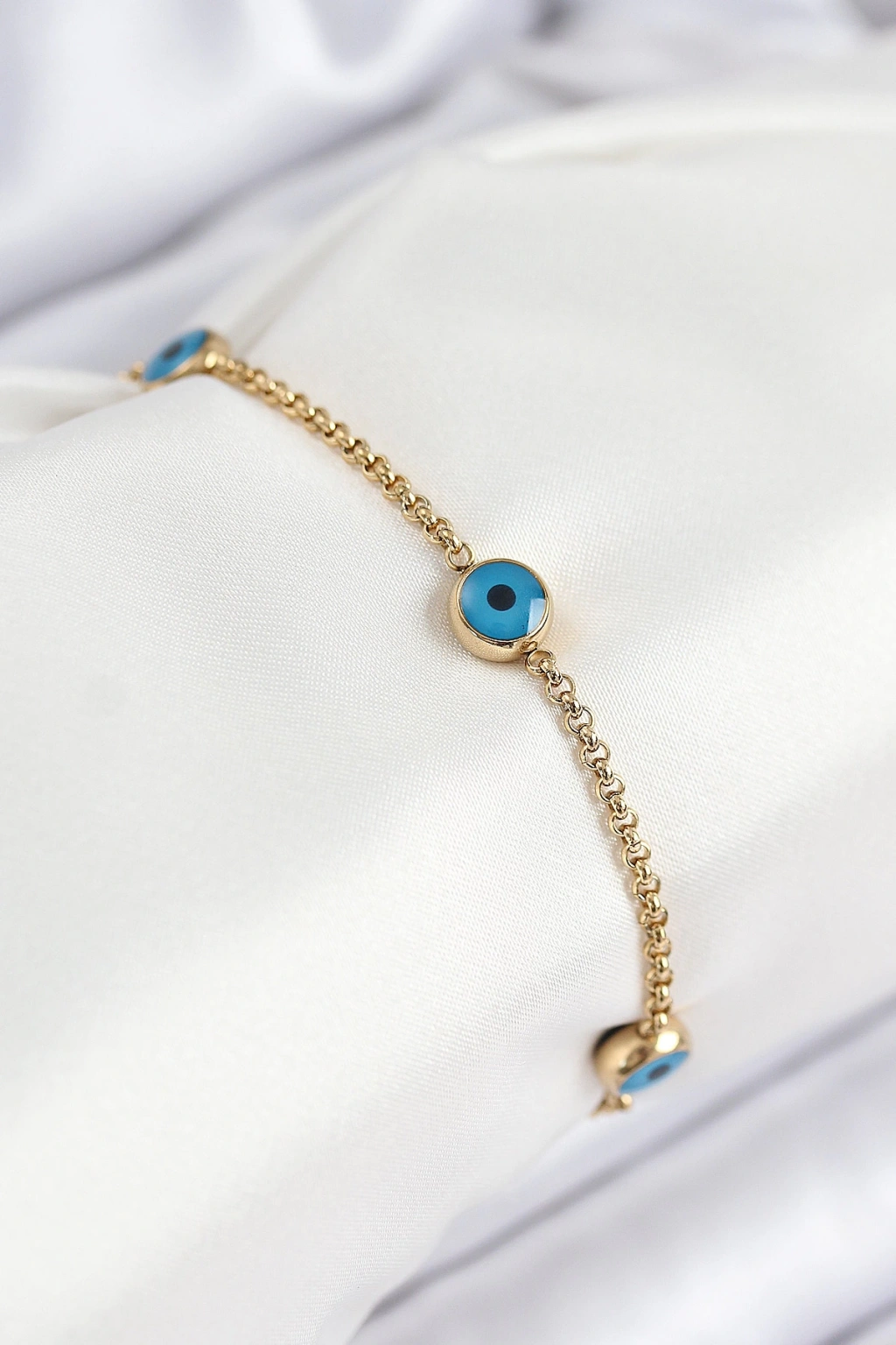 Dodes Dodes 316L Çelik Nazar Boncuğu Model Gold Renk Kadın Bileklik TG27BB7841