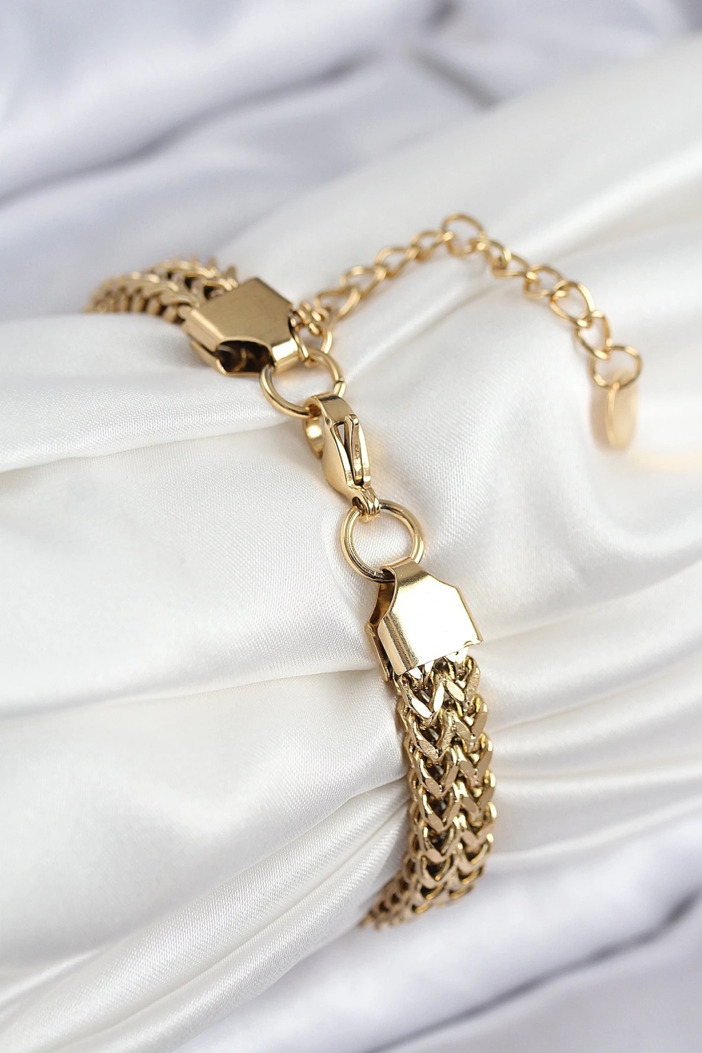 Dodes Dodes 316L Çelik Örme Zincir Model Gold Renk Kadın Bileklik TG27BB7831