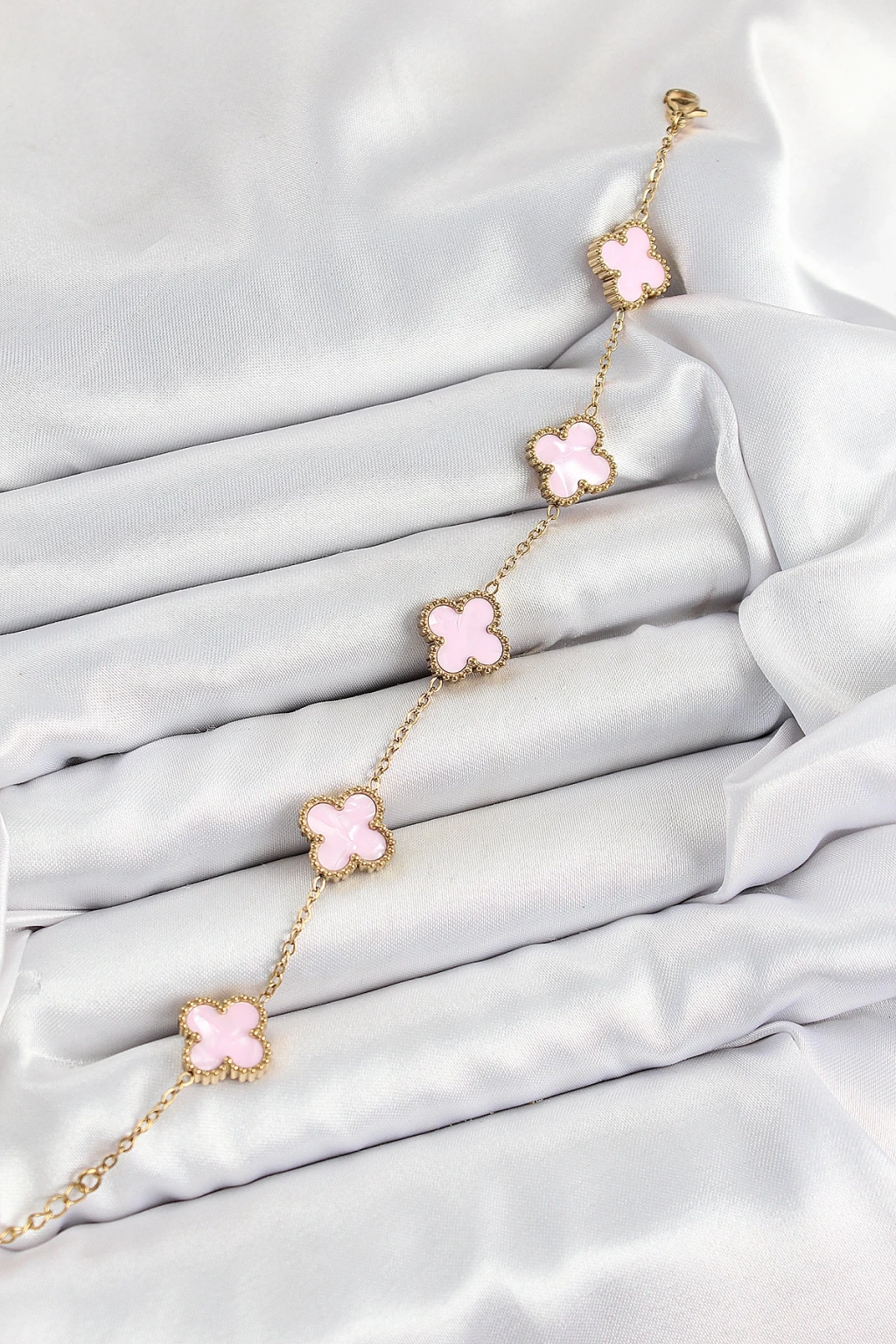 Dodes Dodes 316L Çelik Pembe Sedef Yonca Model Gold Renk Kadın Bileklik TG27BB7365