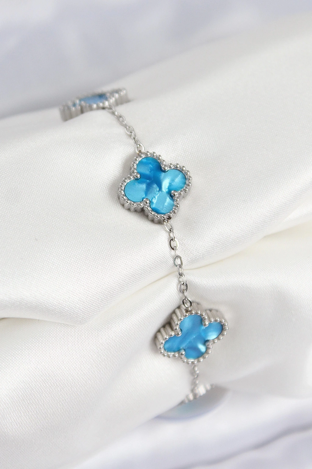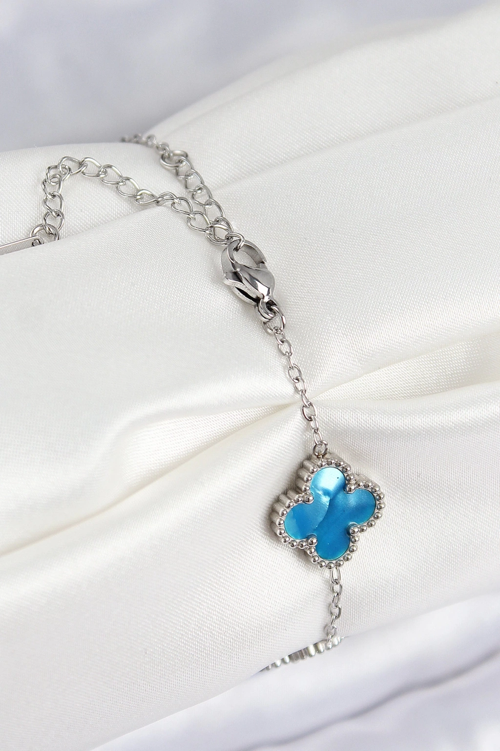 Dodes Dodes 316L Çelik Sedefli Gökyüzü Mavisi Gümüş Renk Yonca Kadın Bileklik TG27BB7667