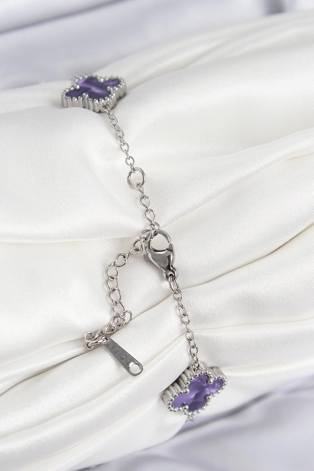 Dodes Dodes 316L Çelik Sedefli Mor Gümüş Renk Yonca Kadın Bileklik TG27BB7674