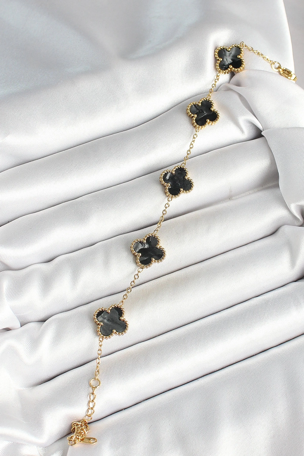 Dodes Dodes 316L Çelik Sedefli Siyah Gold Renk Yonca Kadın Bileklik TG27BB6969