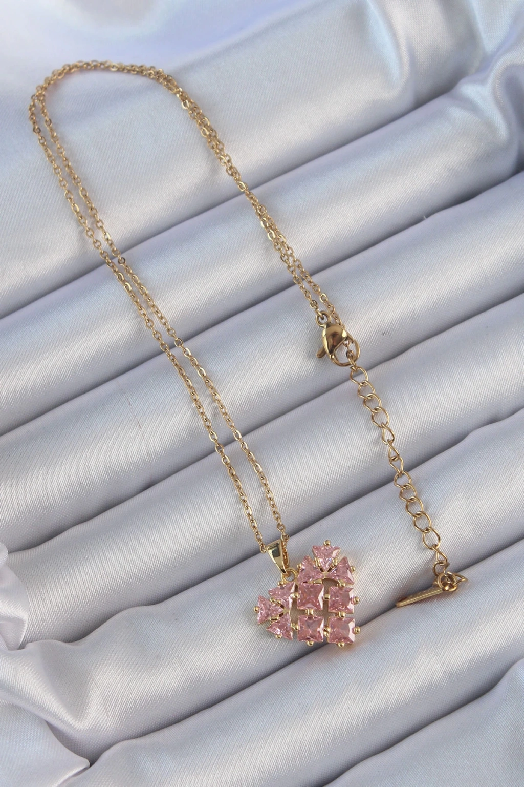 Dodes Dodes 316L Çelik Zincir Altın Renk Pembe Parçalı Zirkon Taşlı Kalp Kolye TG27BKO9163