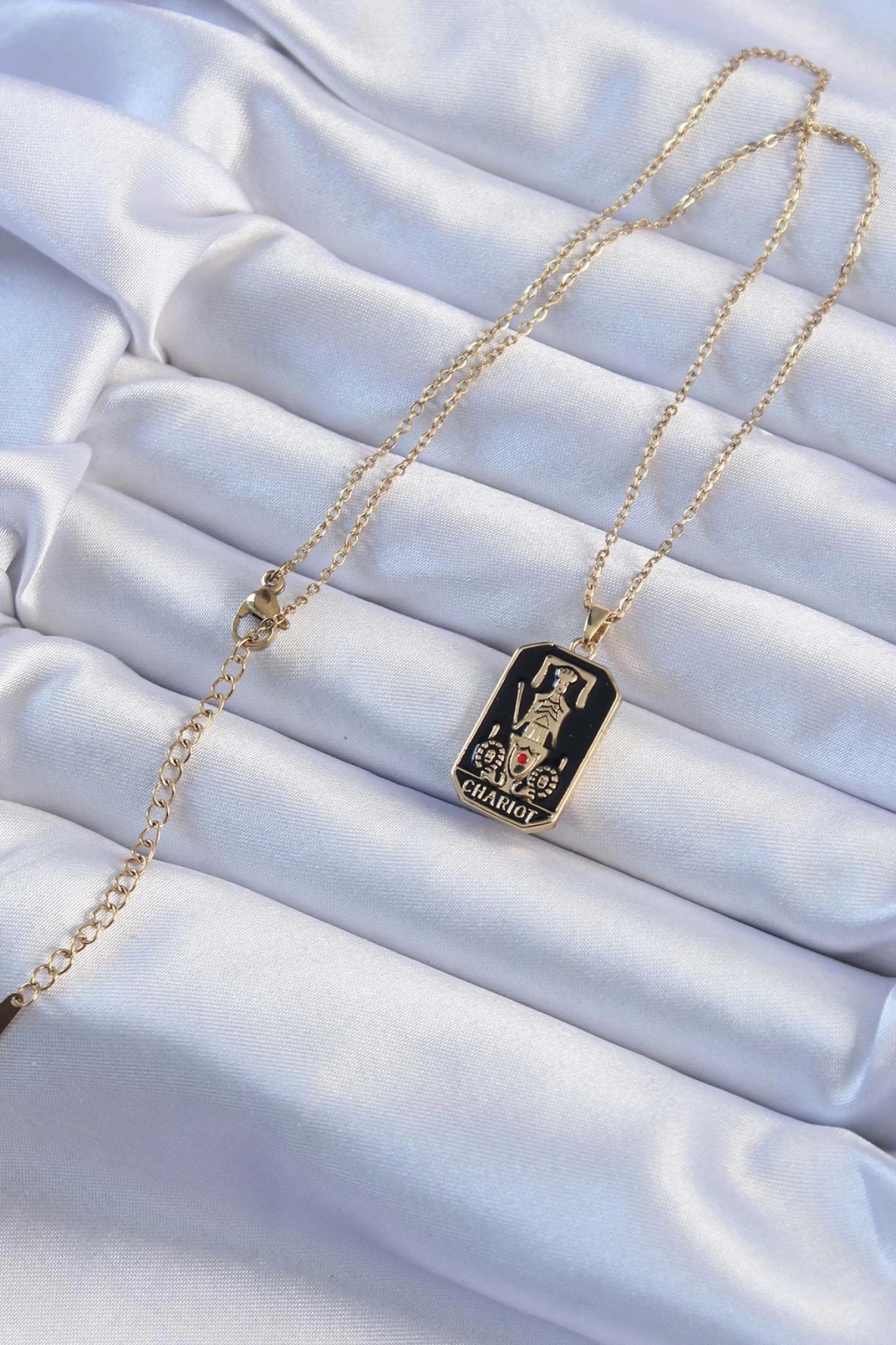 Dodes Dodes 316L Çelik Zincir Altın Renk Siyah Mineli Tarot Kolye TG27BKO9247