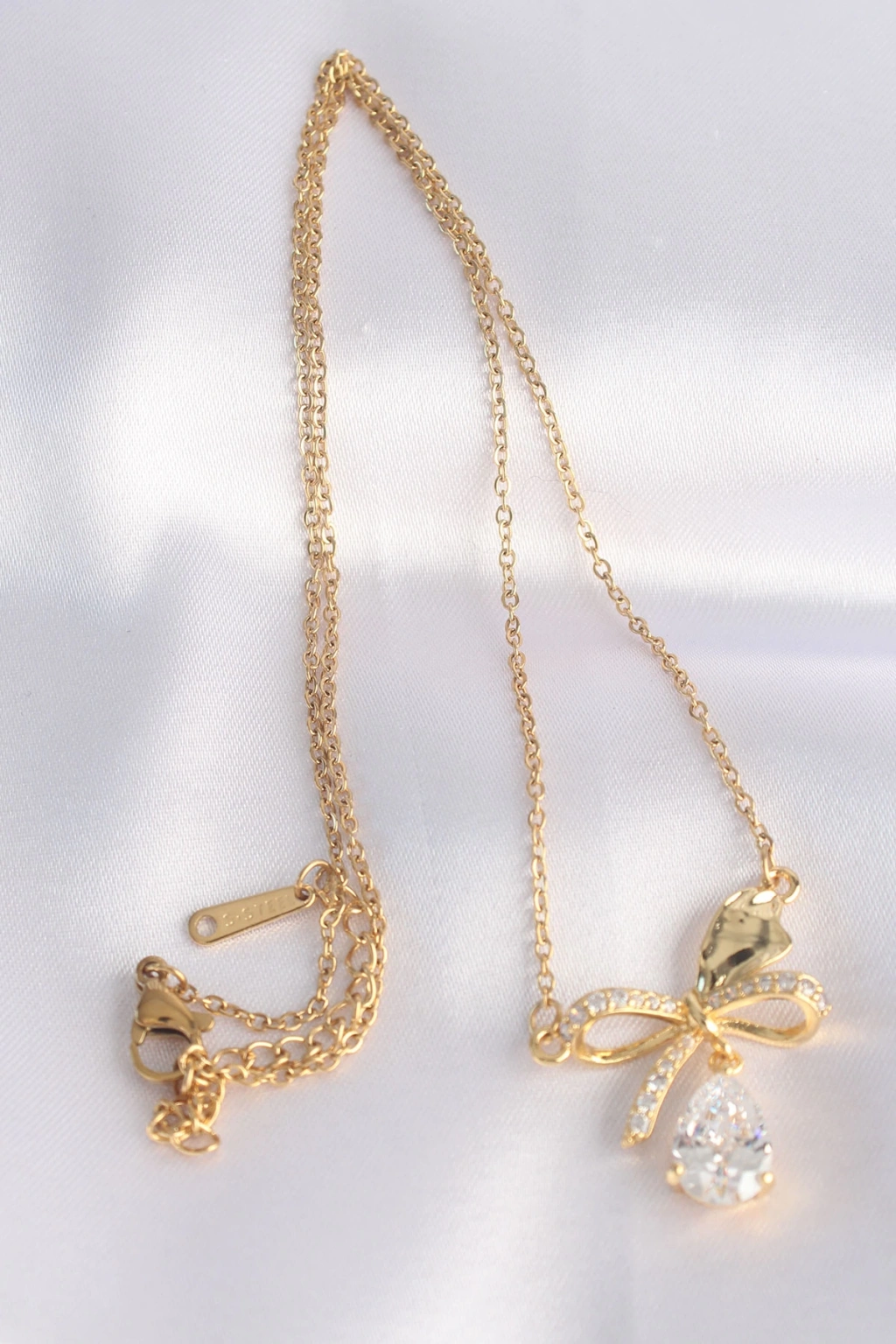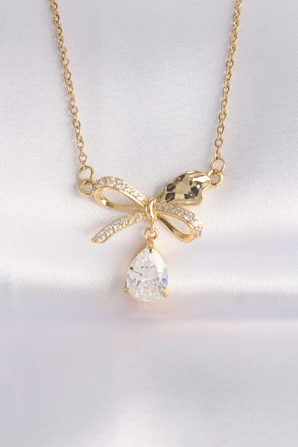 Dodes Dodes 316L Çelik Zincir Altın Renk Zirkon Taşlı Damla Detay Fiyonk Kolye TG27BKO8690