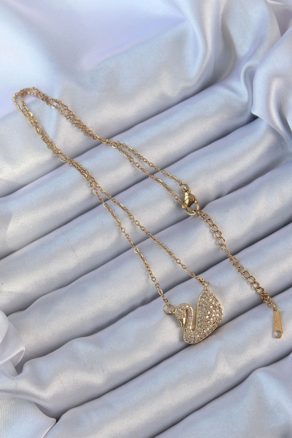 Dodes Dodes 316L Çelik Zincir Altın Renk Zirkon Taşlı Kuğu Kolye TG27BKO9149