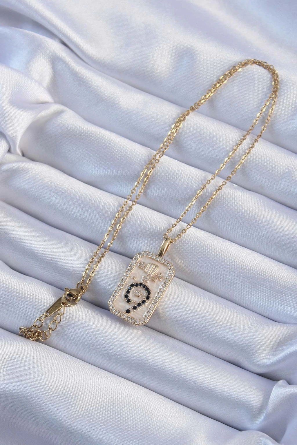 Dodes Dodes Pirinç Zirkon Taşlı Su Yolu Nazar Model Gold Renk Kadın Kolye TG27BKO10428