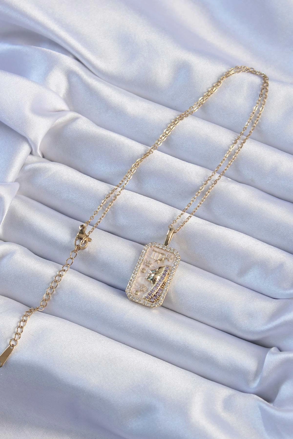 Dodes Dodes 316L Çelik Zincir Altın Renk Zirkon Taşlı Yüz Figürlü Tarot Kolye TG27BKO9241