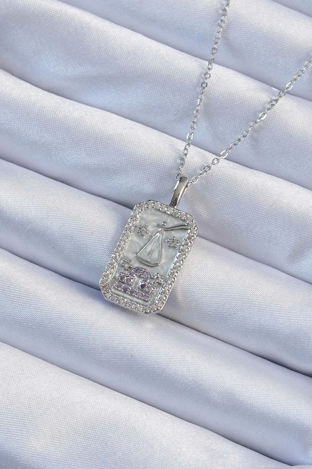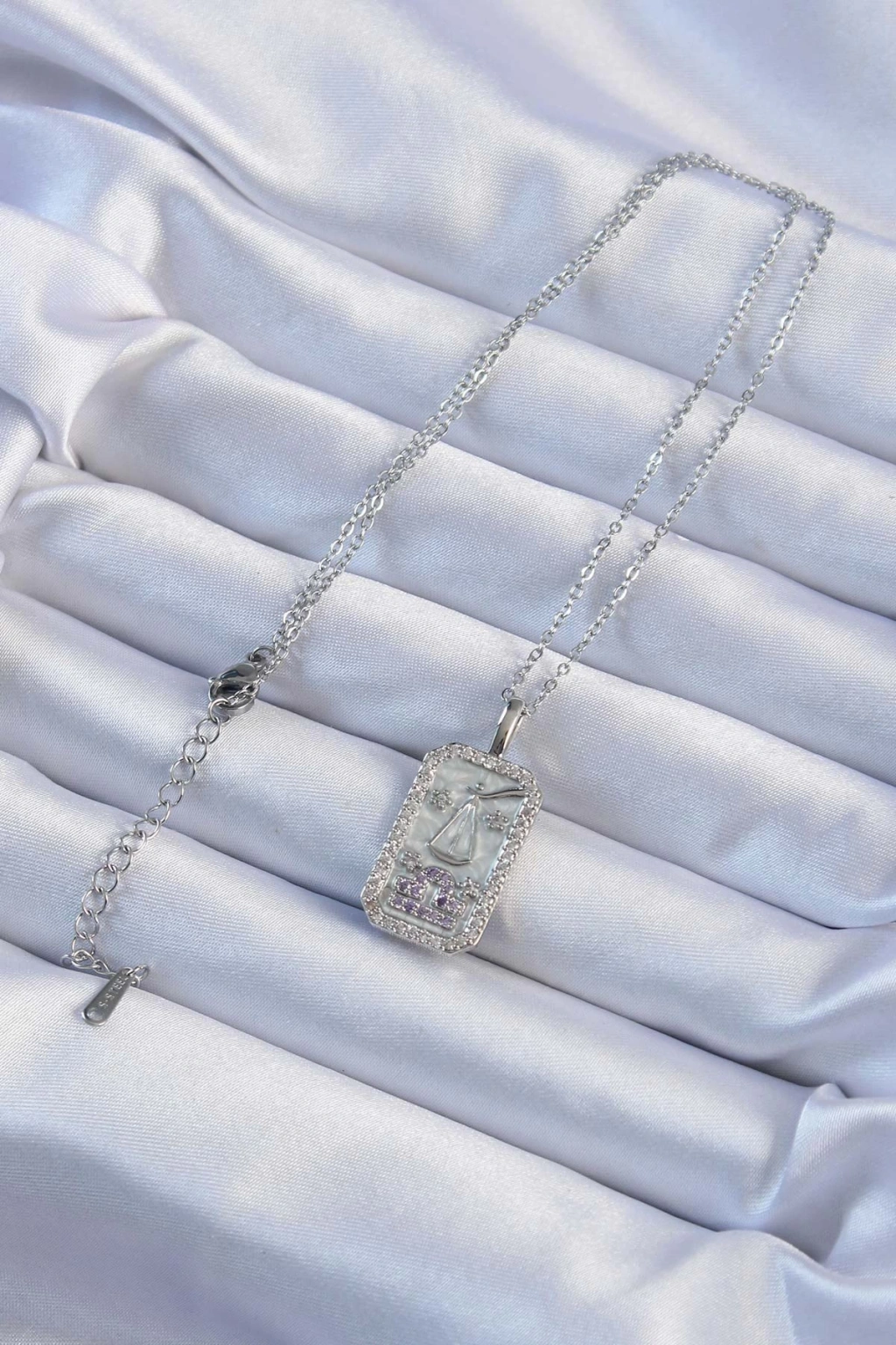 Dodes Dodes 316L Çelik Zincir Gümüş Renk Lila Zirkon Taşlı Tarot Kolye TG27BKO9238