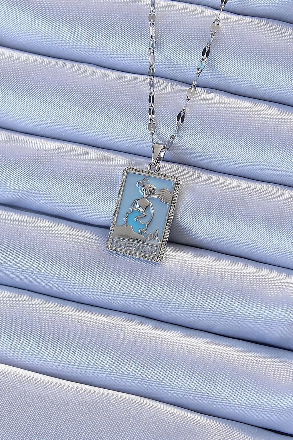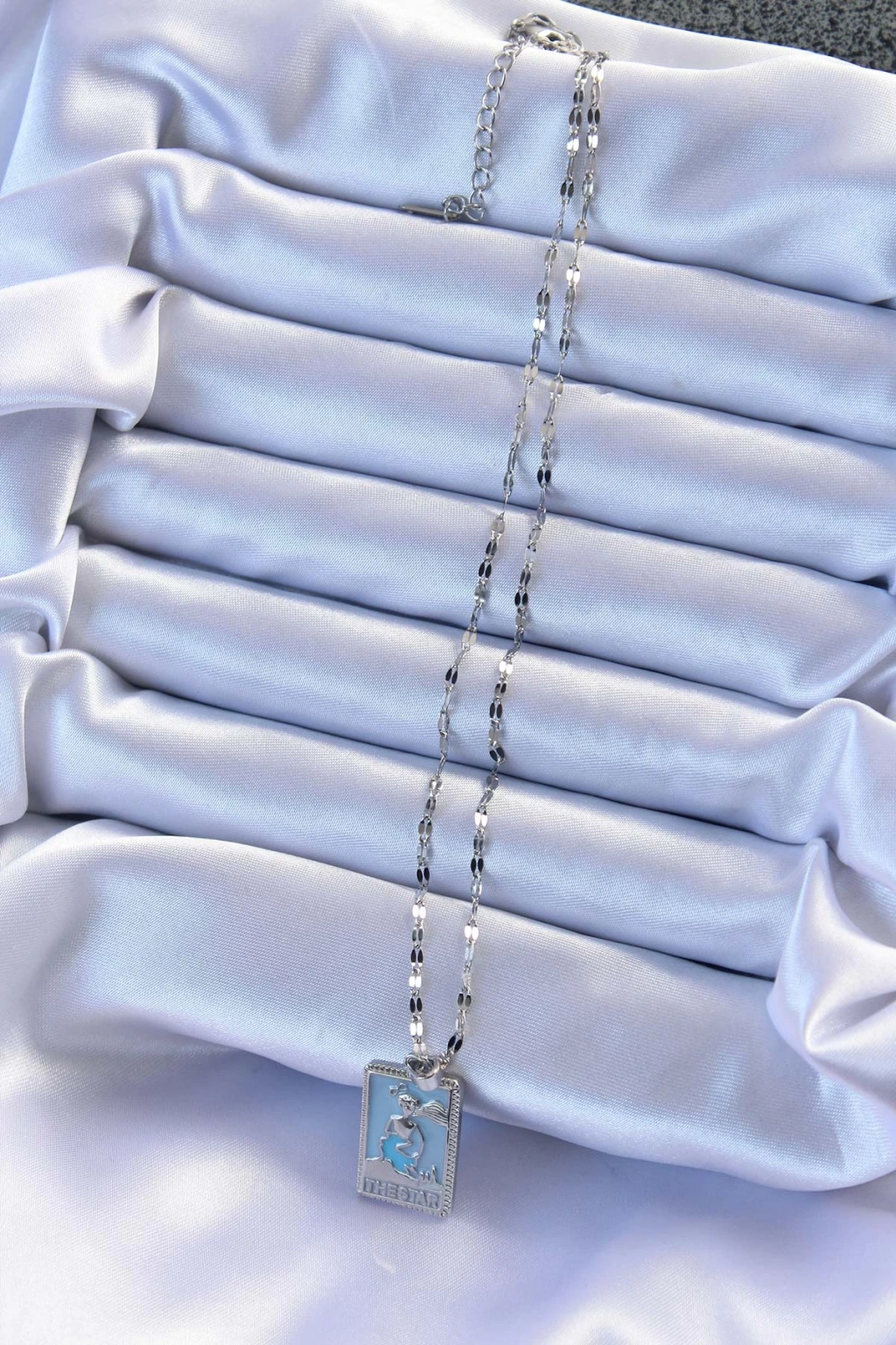 Dodes Dodes 316L Çelik Zincir Gümüş Renk Mavi Mineli Tarot Kolye TG27BKO9210