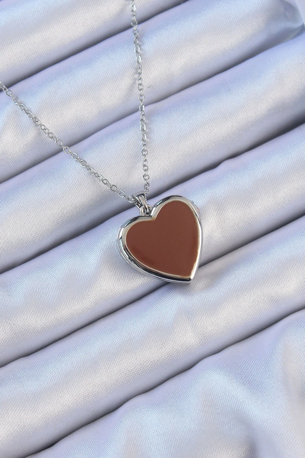 Dodes Dodes 316L Çelik Zincir Gümüş Renk Mineli İçi Açılan Kalp Kolye TG27BKO9098