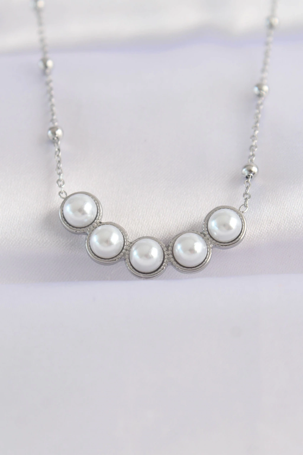 Dodes Dodes 316L Çelik Zincir Gümüş Renk Sıralı İnci Taşlı Kolye TG27BKO8654