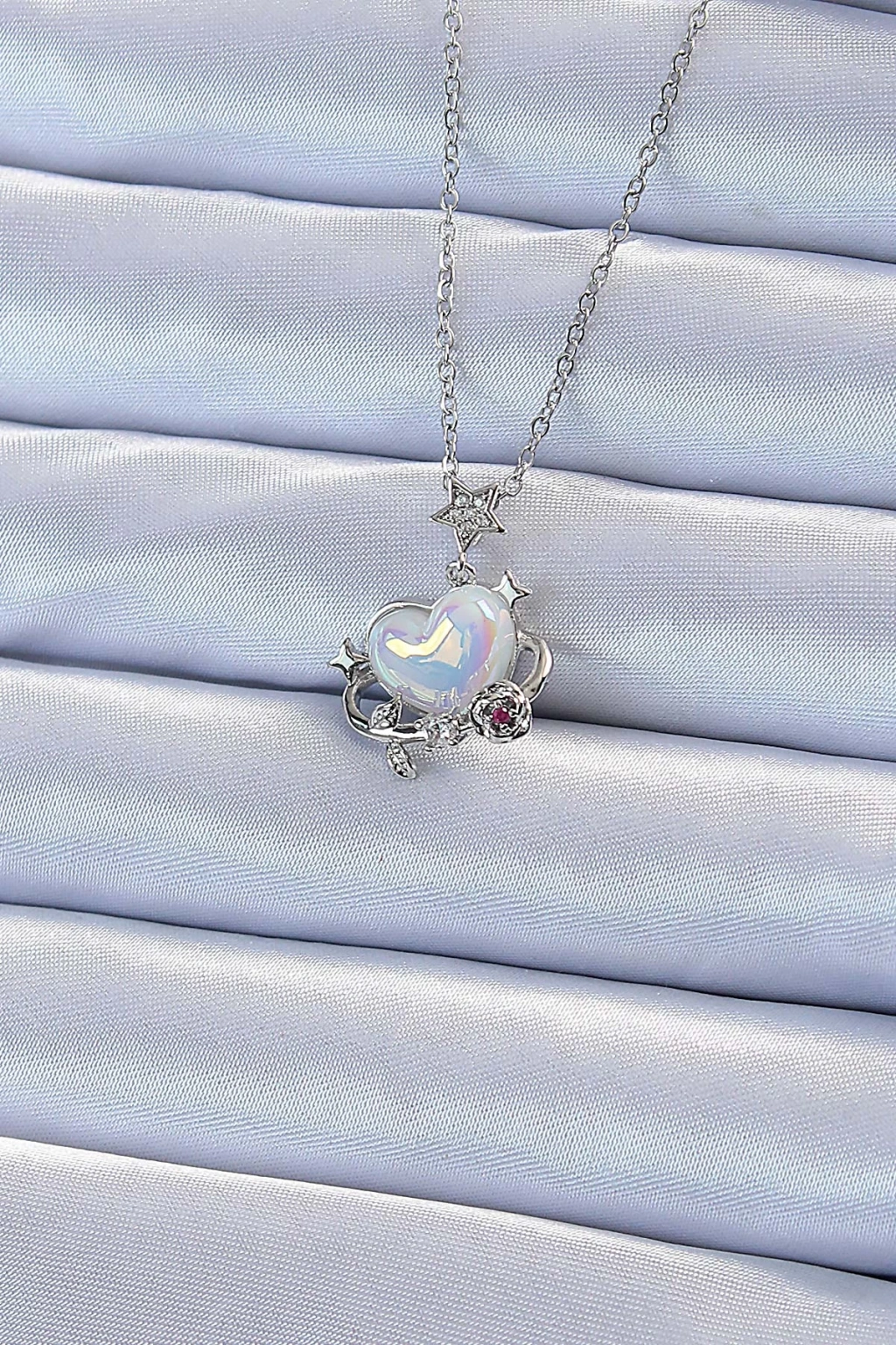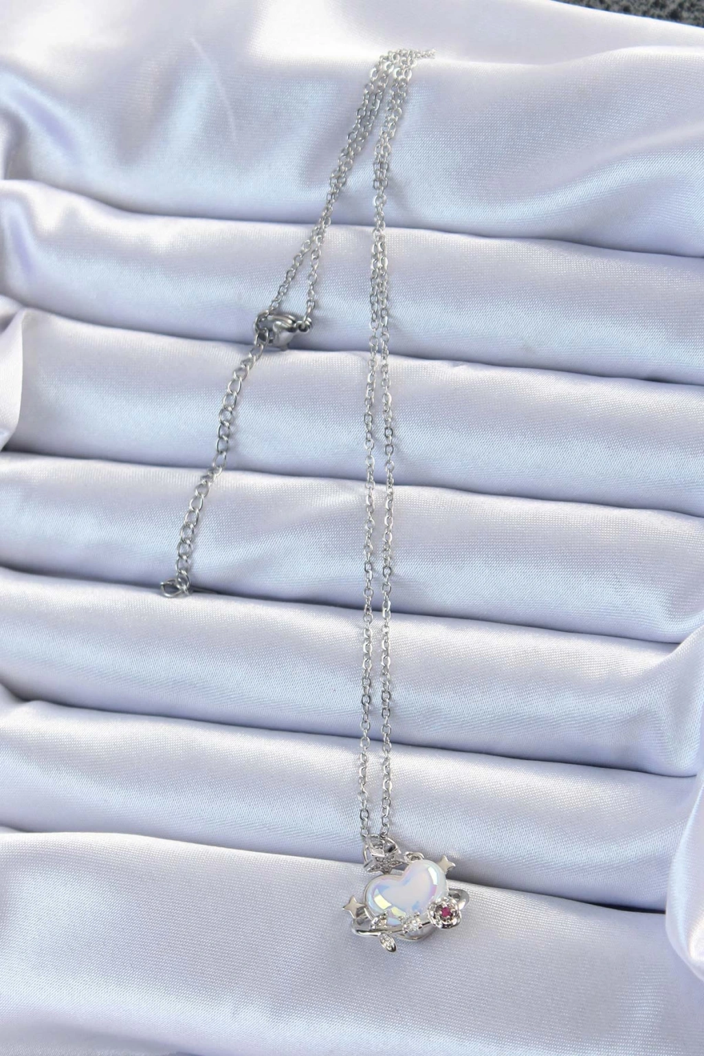 Dodes Dodes 316L Çelik Zincir Gümüş Renk Zirkon Taşlı Gezegen Görünümlü Kalp Kolye TG27BKO9218