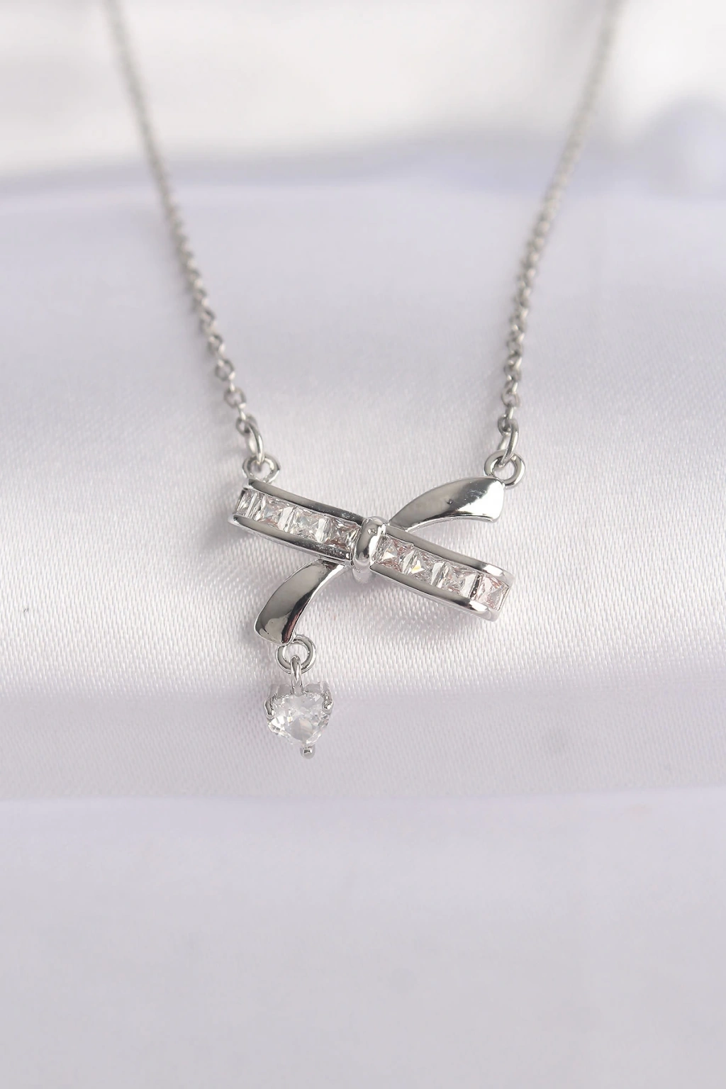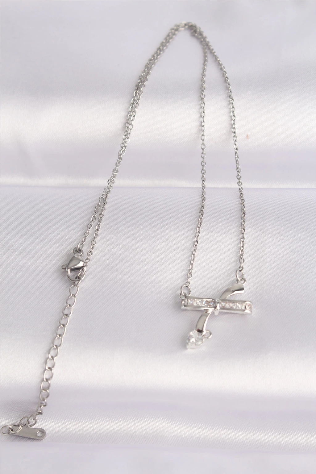 Dodes Dodes 316L Çelik Zincir Gümüş Renk Zirkon Taşlı Kalp Detay Fiyonk Kolye TG27BKO8621
