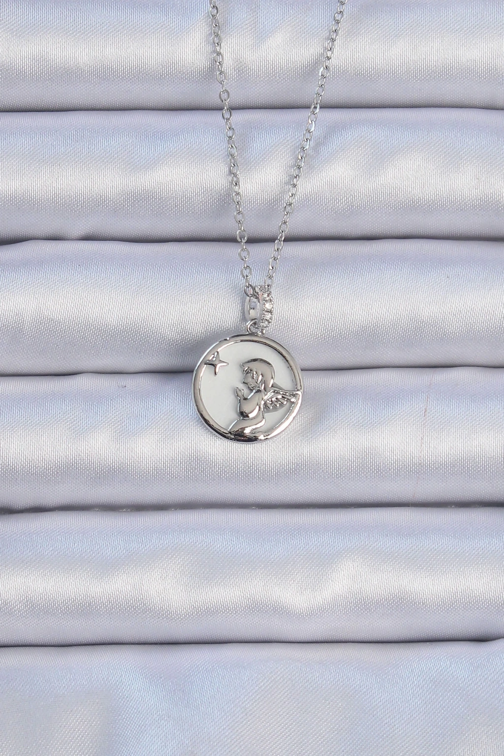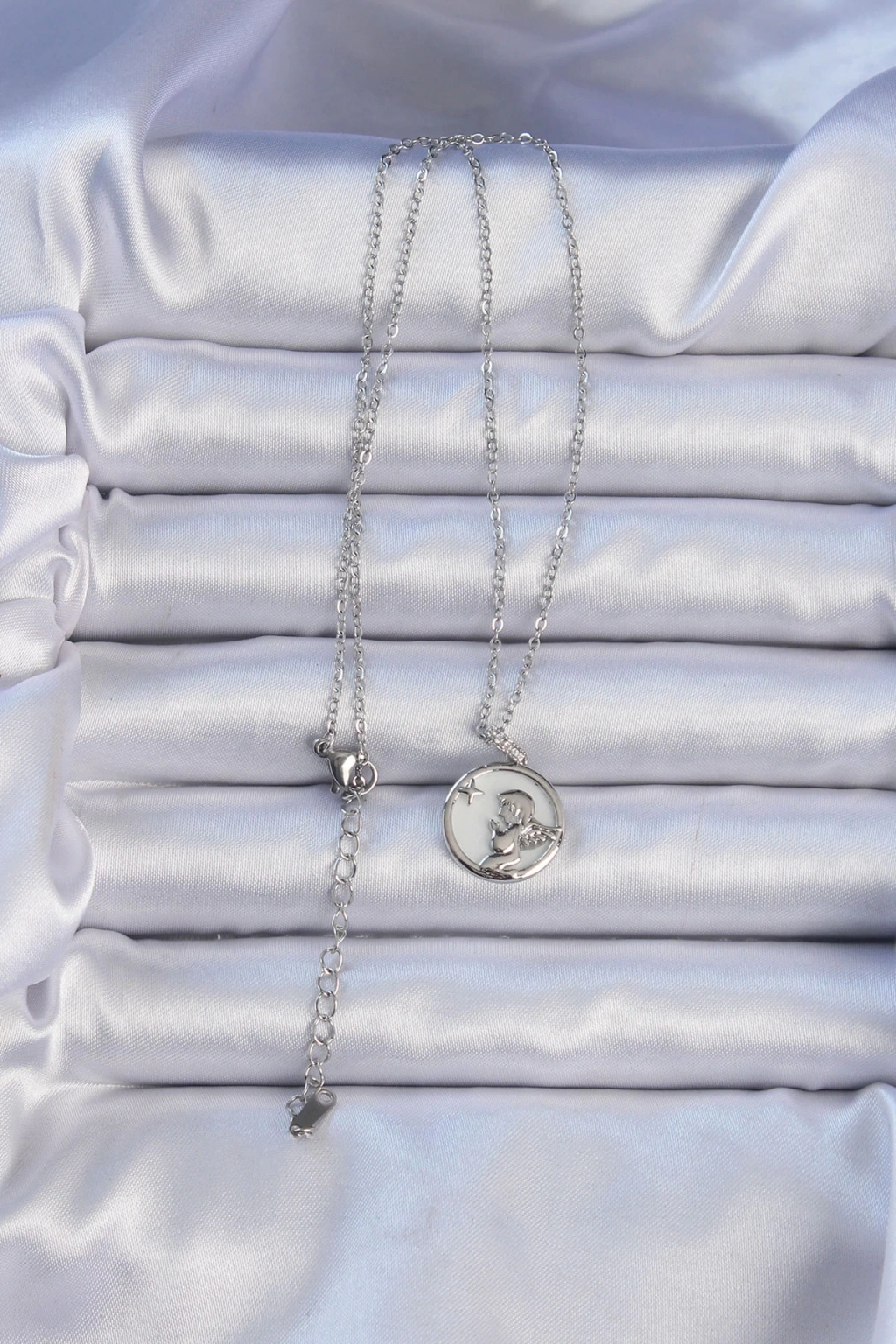Dodes Dodes 316L Çelik Zincir Gümüş Renk Zirkon Taşlı Mineli Melek Kolye TG27BKO9086