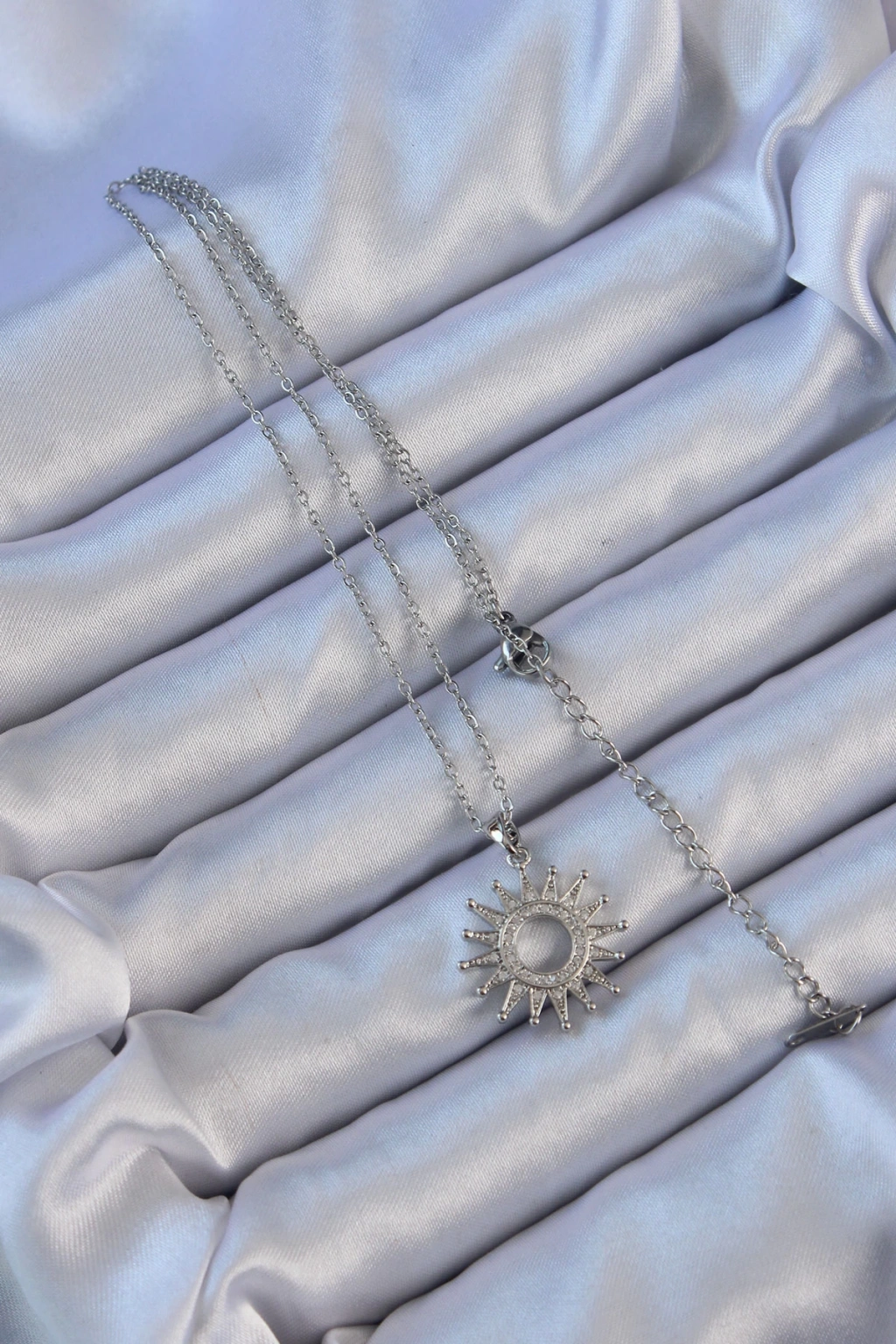Dodes Dodes 316L Çelik Zincir Gümüş Renk Zirkon Taşlı Parlayan Güneş Kolye TG27BKO9106