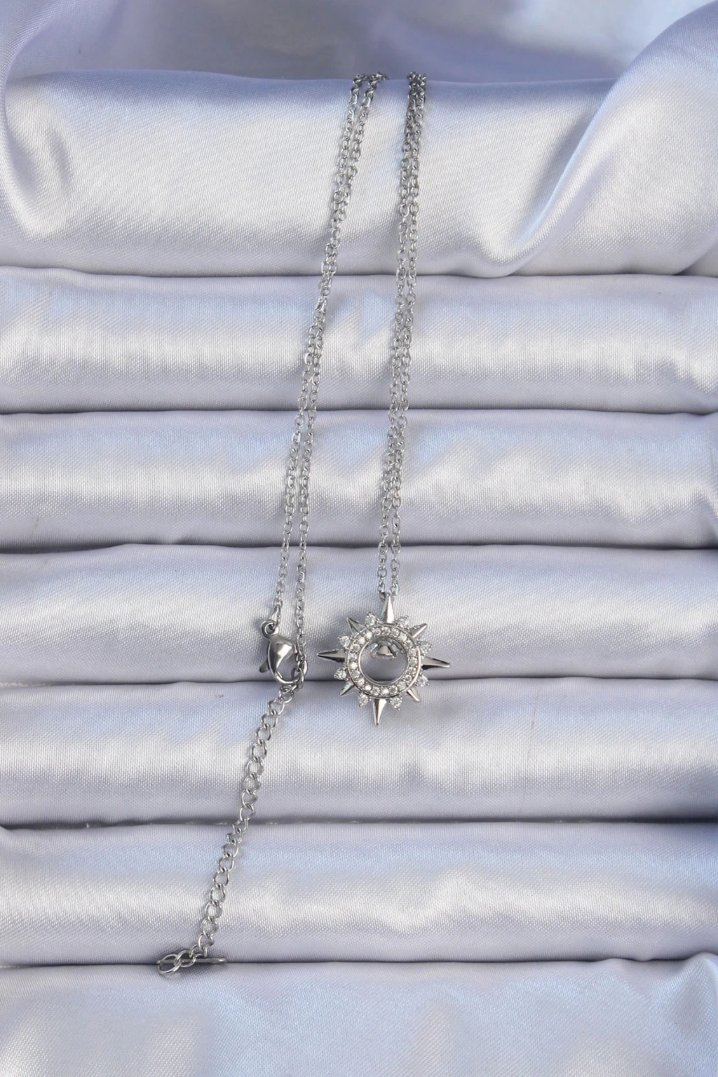 Dodes Dodes 316L Çelik Zincir Gümüş Renk Zirkon Taşlı Parlayan Yıldız Kolye TG27BKO9084