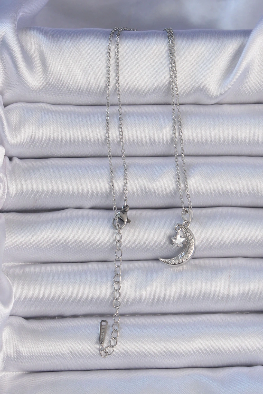 Dodes Dodes 316L Çelik Zincir Gümüş Renk Zirkon Taşlı Sallantılı Ay Yıldız Kolye TG27BKO9062