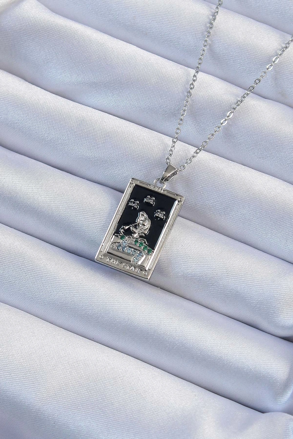 Dodes Dodes 316L Çelik Zincir Gümüş Renk Zirkon Taşlı Siyah Mineli Kız Figürlü Tarot Kolye TG27BKO9228