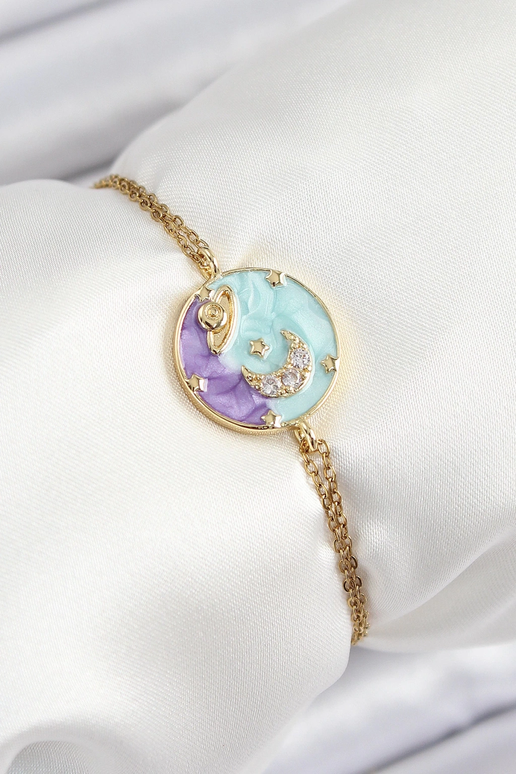 Dodes Dodes 316L Çelik Zincir Mineli Sanatsal Portre Zirkon Taşlı Gezegen Model Gold Renk Kadın Bileklik TG27BB7234
