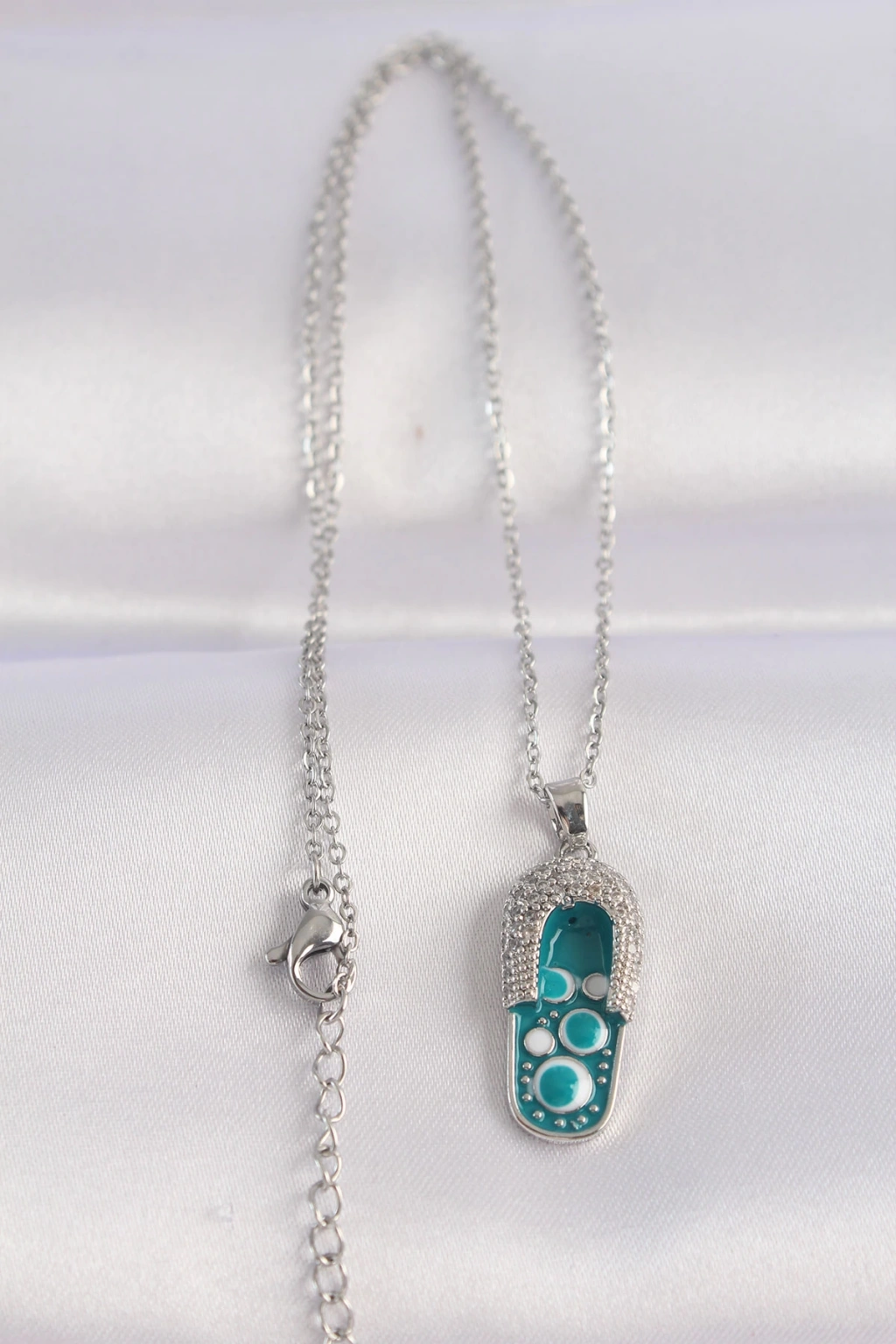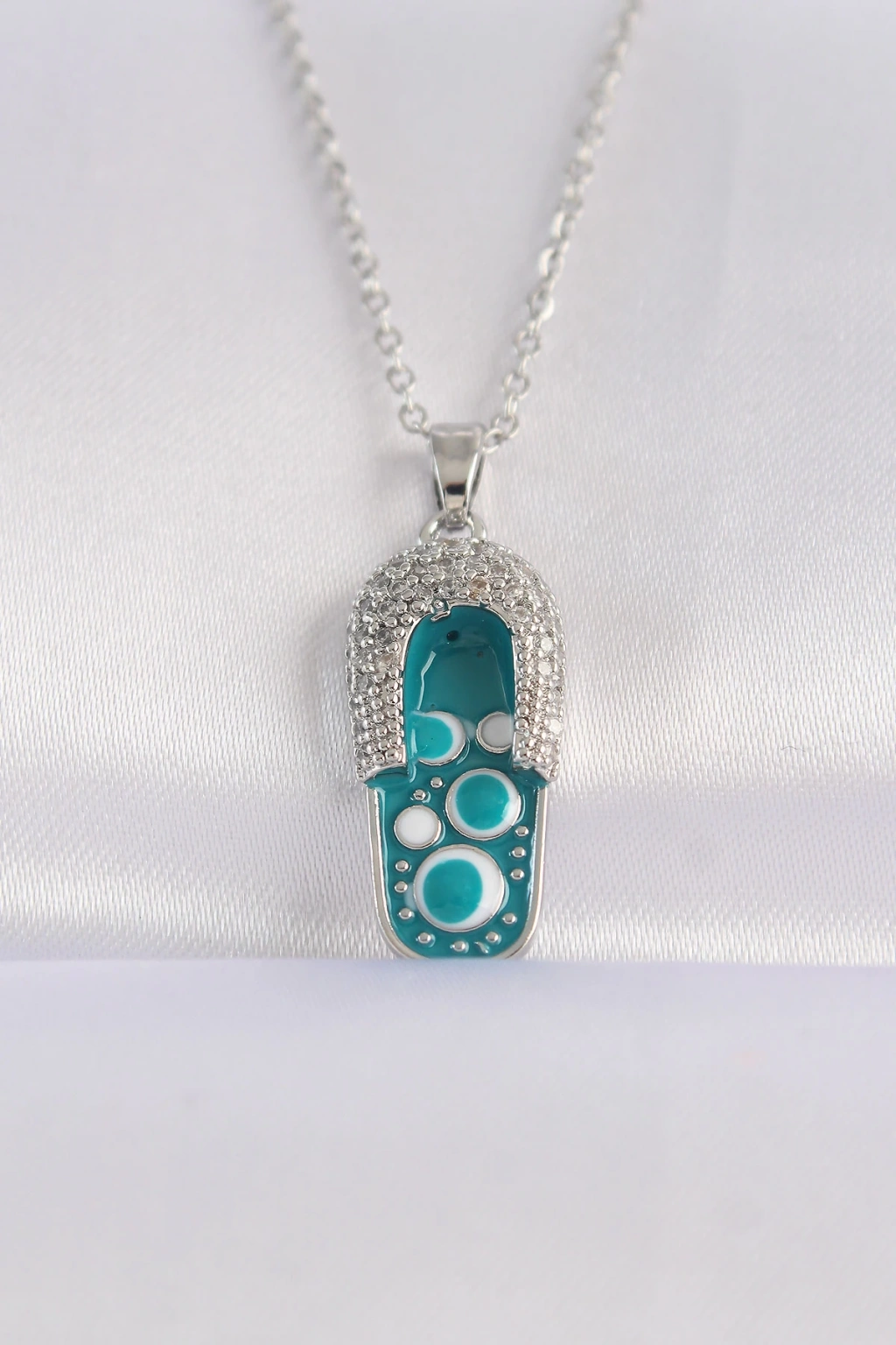 Dodes Dodes 316L Çelik Zincir Zirkon Taşlı Gümüş Renk Nazarlı Terlik Tasarımlı Kolye TG27BKO8665