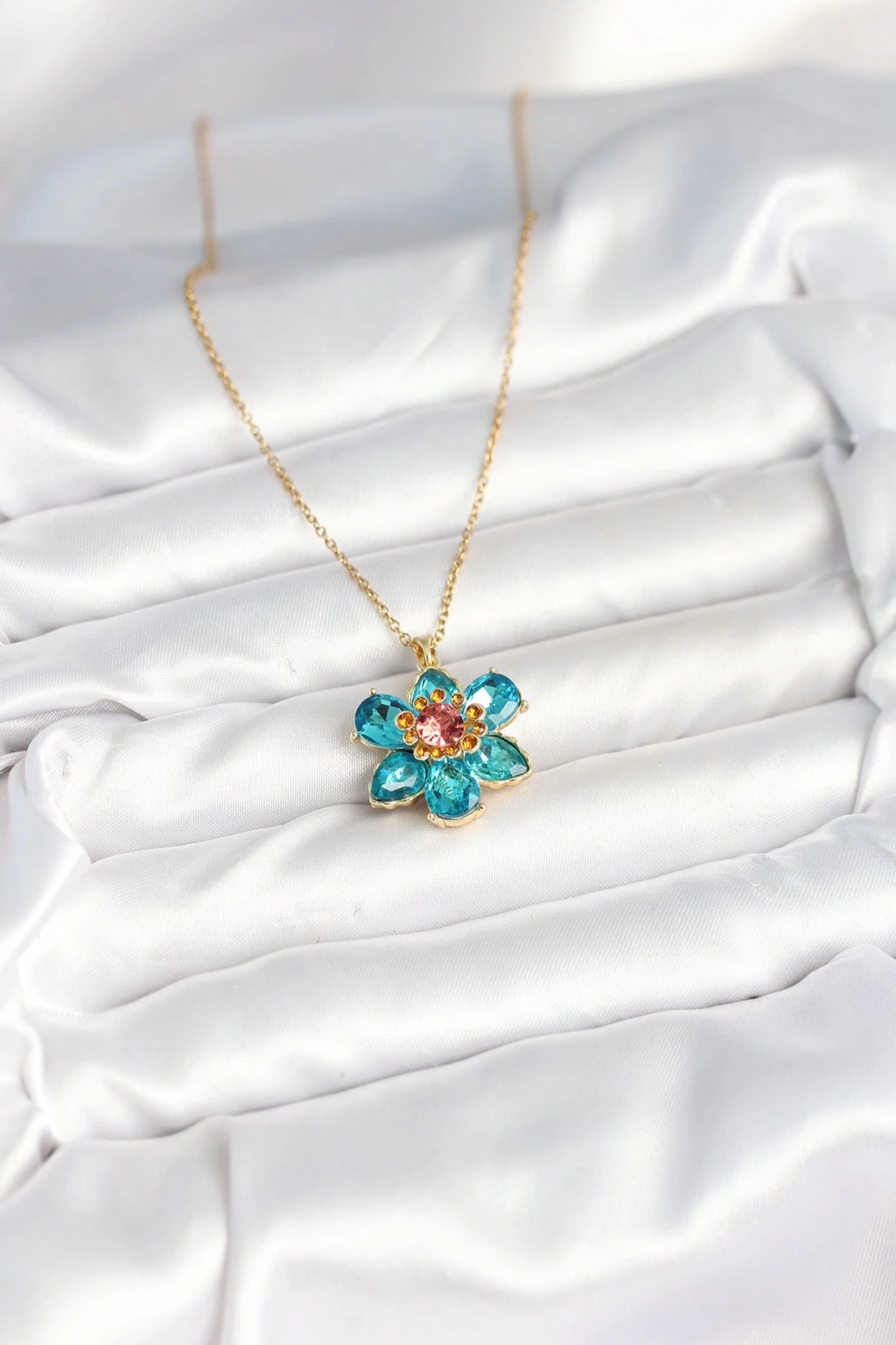 Dodes Dodes 316L Çelik Zincirli Mavi Çiçek Model Kadın Kolye TG27BKO10598
