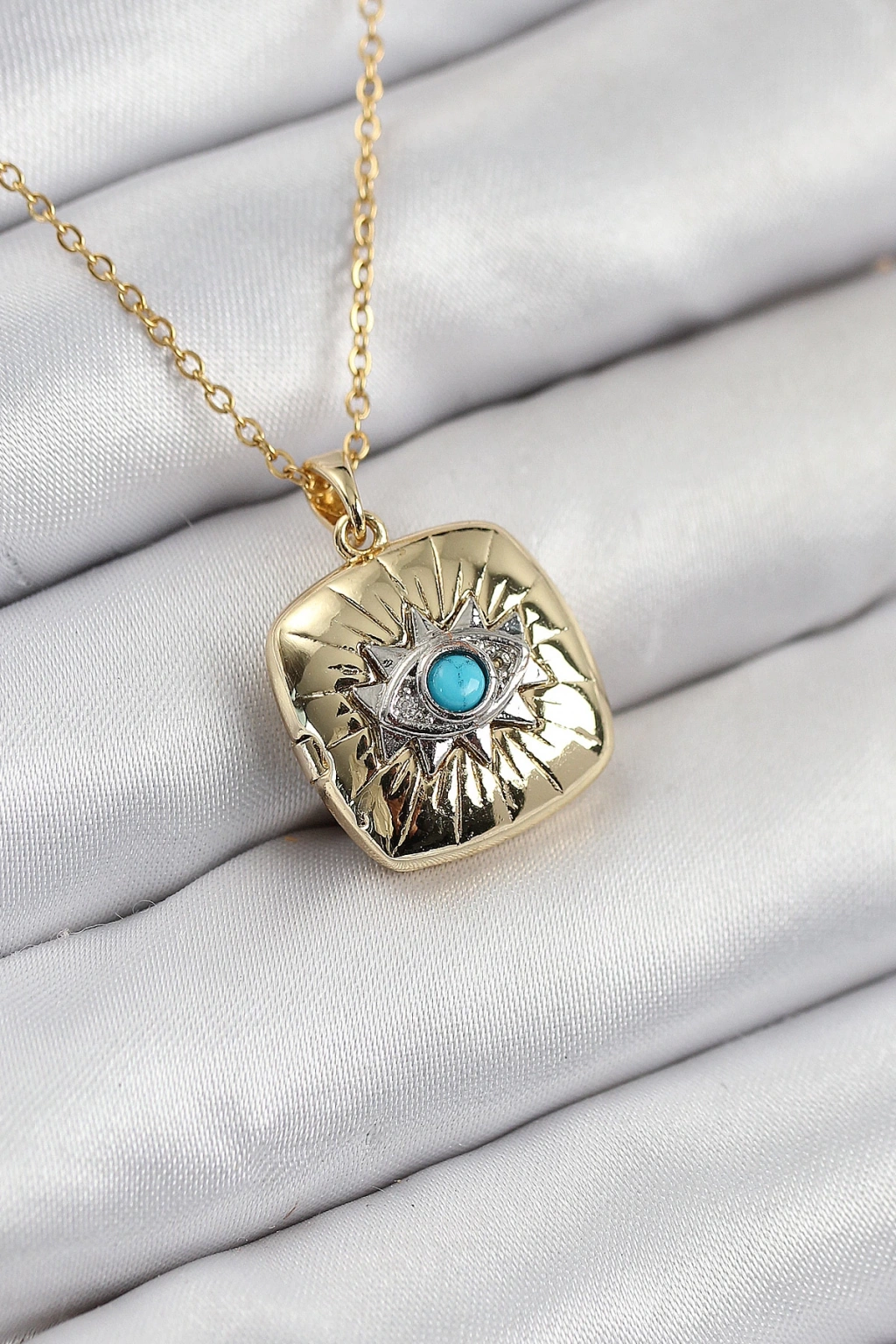 Dodes Dodes 316L Çelik Zirkon Taşlı Açılabilr Kapaklı Göz Model Gold Renk Kadın Kolye TG27BKO10518