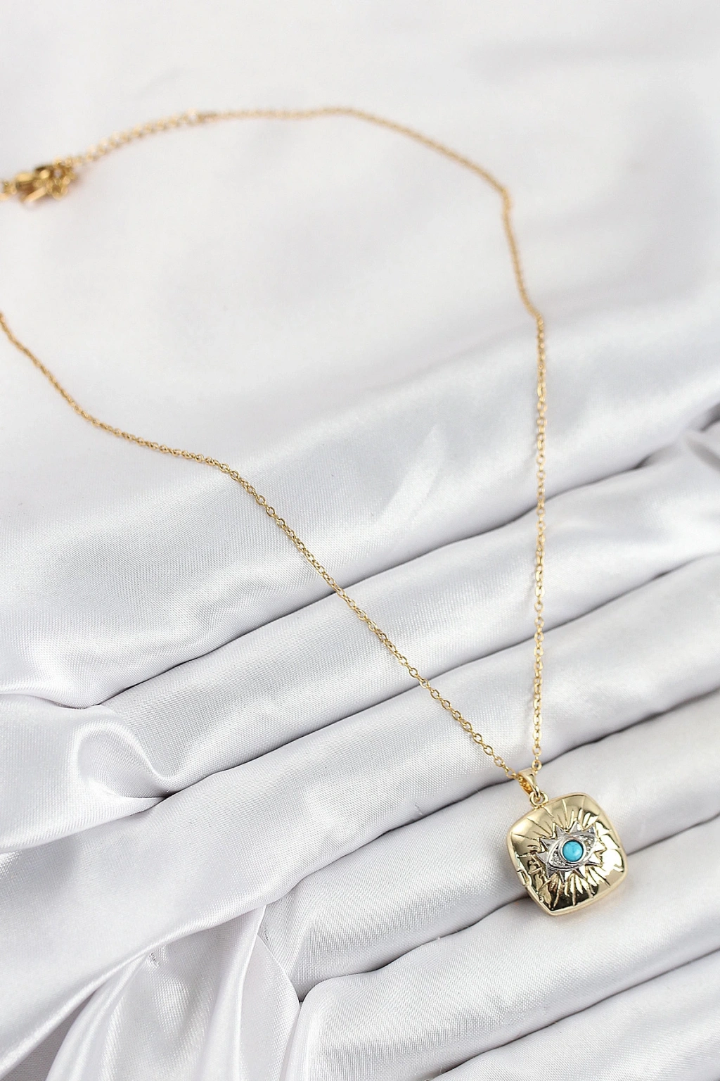 Dodes Dodes Pirinç Zirkon Taşlı Su Yolu Nazar Model Gold Renk Kadın Kolye TG27BKO10428
