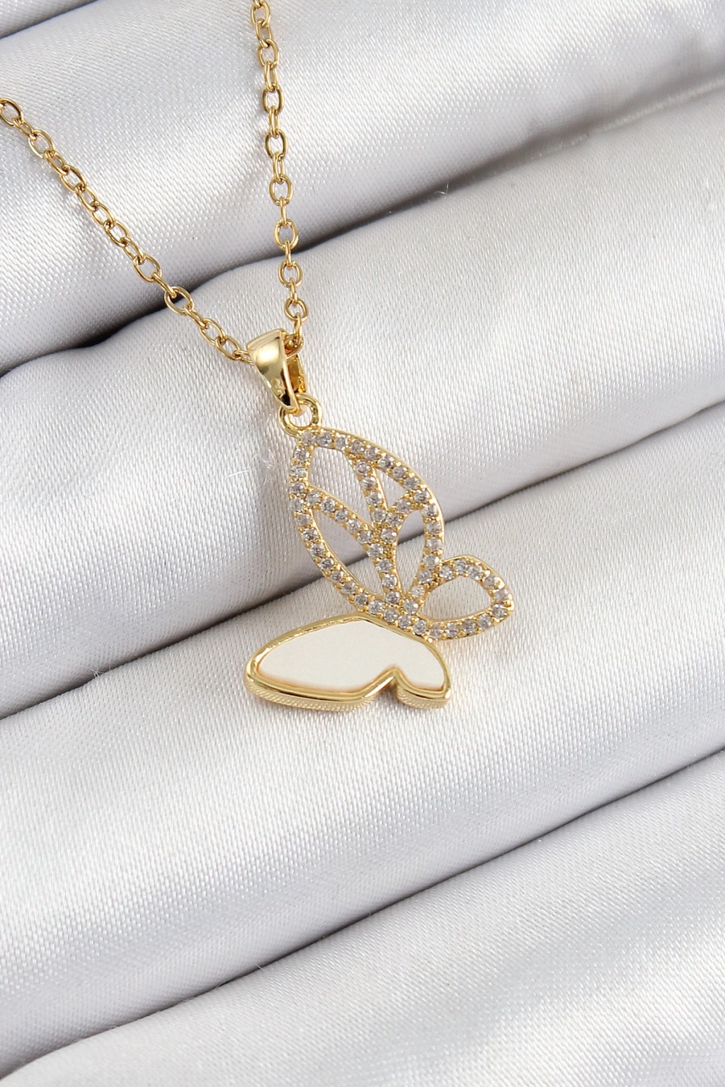 Dodes Dodes 316L Çelik Zirkon Taşlı Kelebek Model Gold Renk Kadın Kolye TG27BKO10405