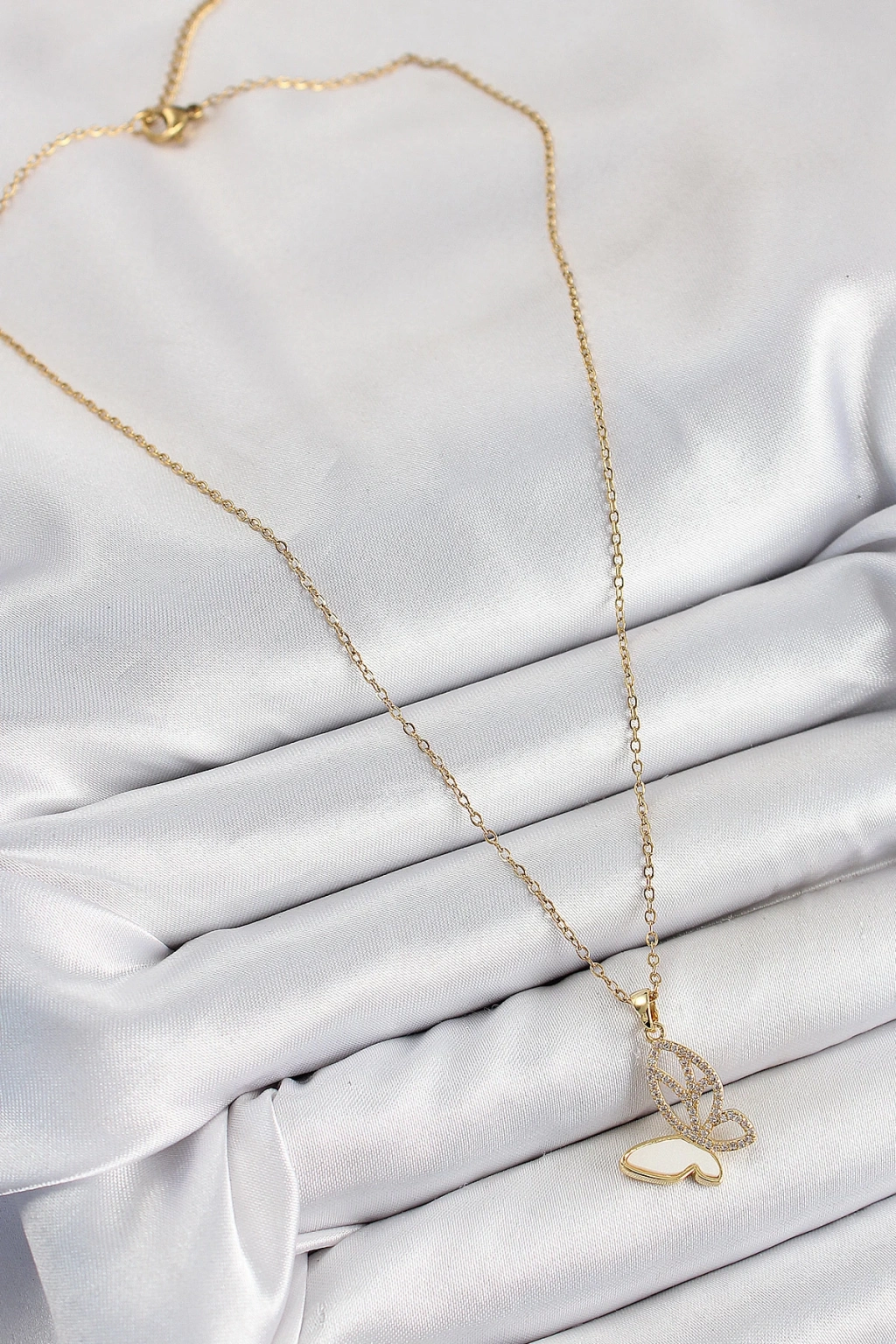 Dodes Dodes 316L Çelik Gold Renk 2'Li Simli Kelebek Model Kadın Kolye TG27BKO9928
