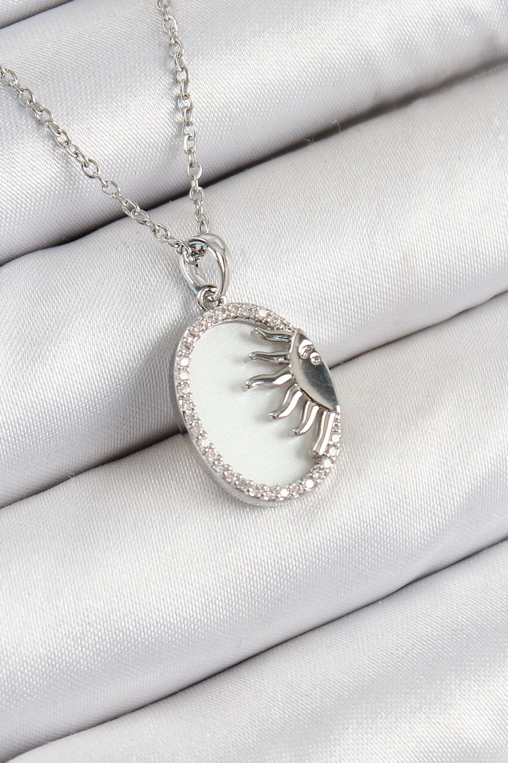 Dodes Dodes 316L Çelik Zirkon Taşlı Yarım Güneş Model Gümüş Renk Kadın Kolye TG27BKO10344