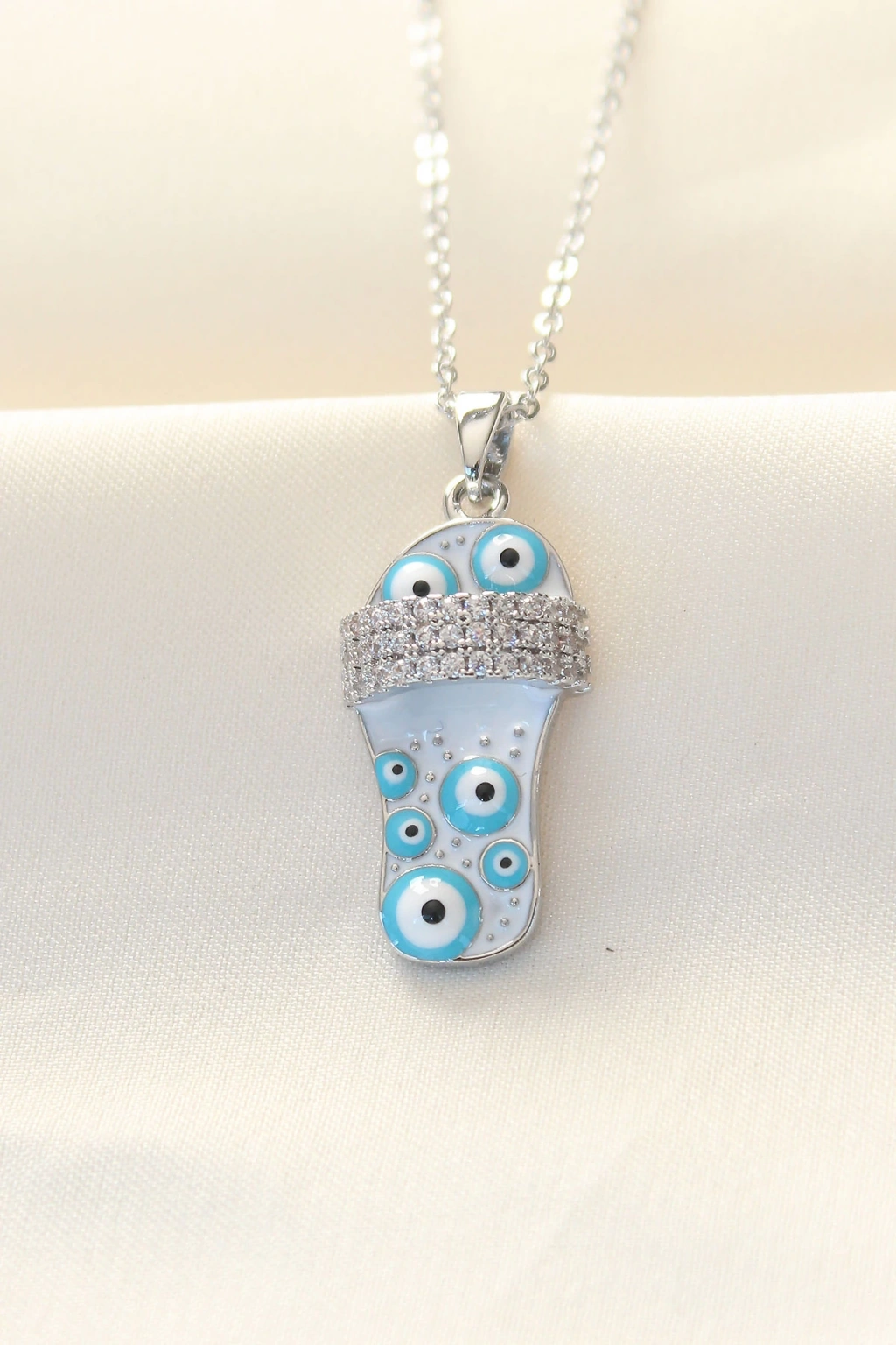 Dodes Dodes 316L Zinciri Çelik Zirkon Taşlı Gümüş Renk Nazar Boncuklu Terlik Kolye TG27BKO8495