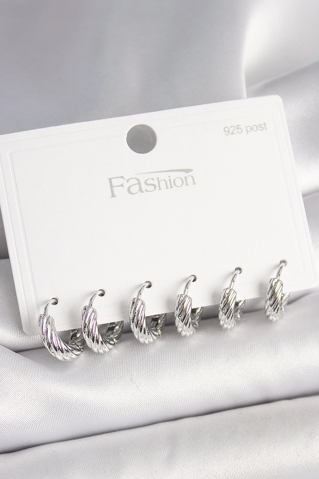 Dodes Dodes 925 Ayar Gümüş Çivi Pirinç Gümüş Renk İşlemeli Halka Model Kadın Küpe Seti TG27BKP10410