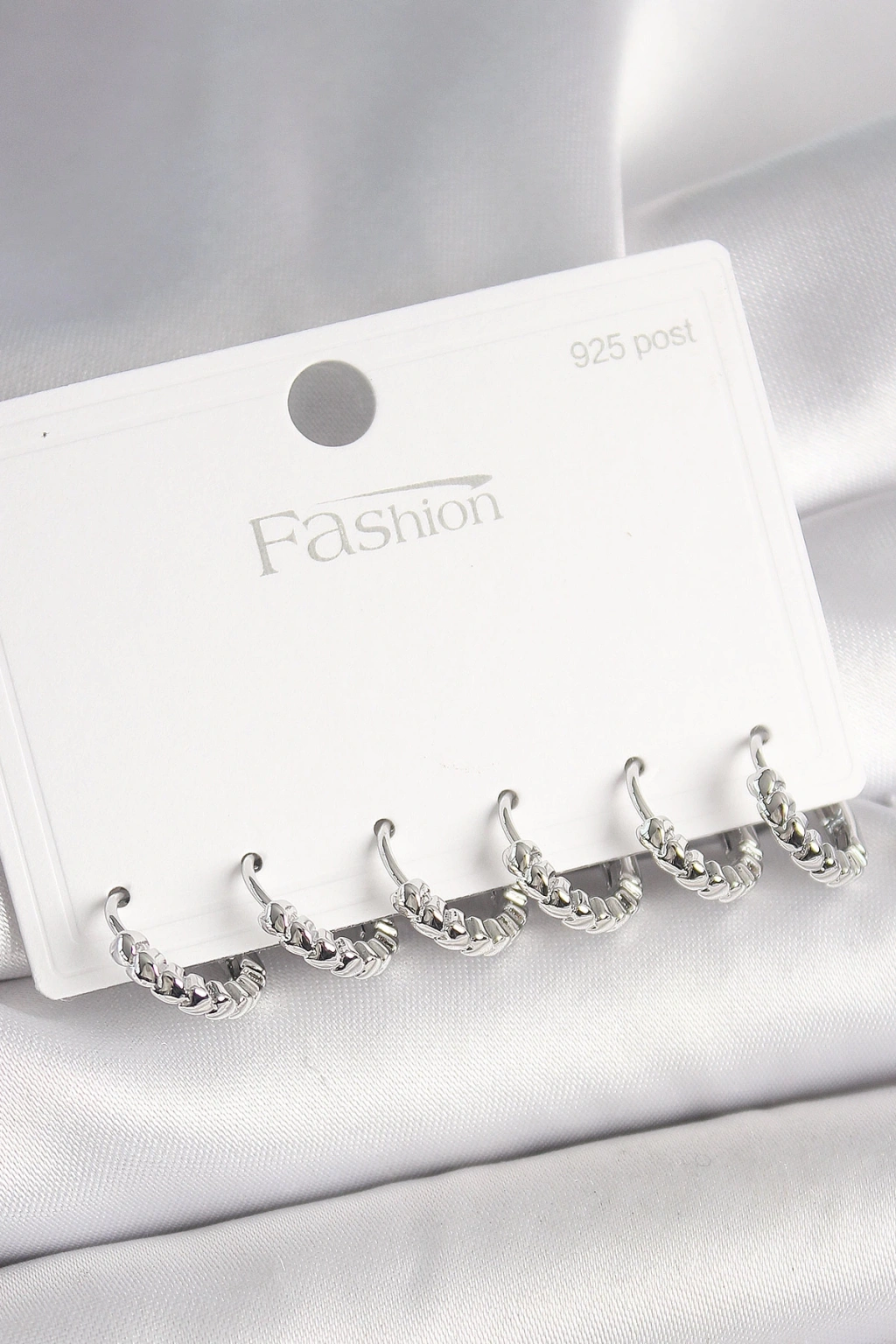Dodes Dodes 925 Ayar Gümüş Çivi Pirinç Gümüş Renk Kalp İşlemeli Halka Model Kadın Küpe Seti TG27BKP10412