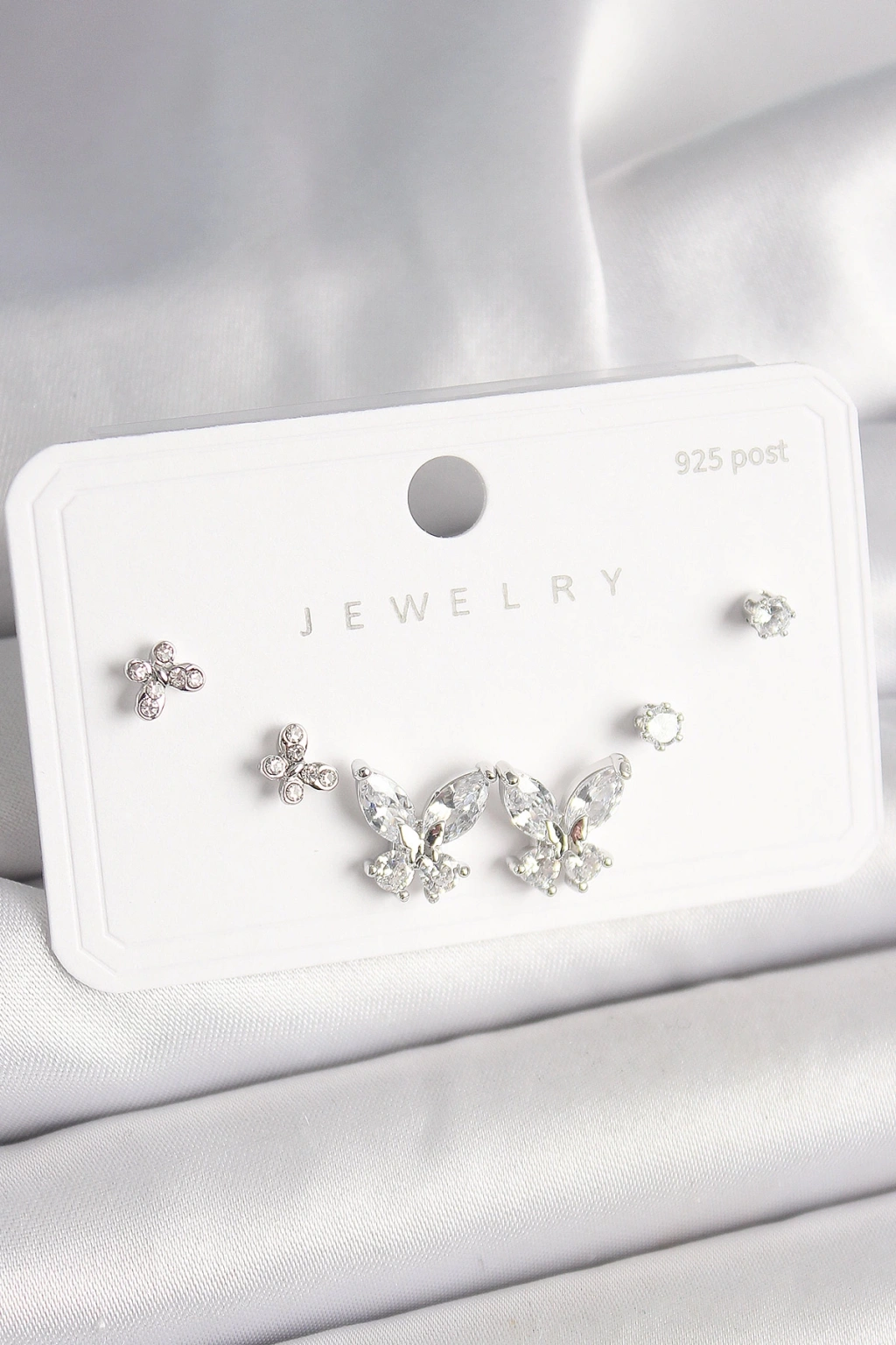 Dodes Dodes 925 Ayar Gümüş Çivi Pirinç Zirkon Taşlı Kelebek Model Kadın Küpe Seti TG27BKP10402
