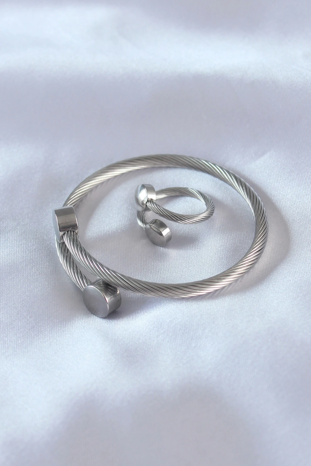 Dodes Dodes Çelik Gümüş Renk Sıkı Burgu Model Erkek Bileklik Yüzük Seti TG27EB3591