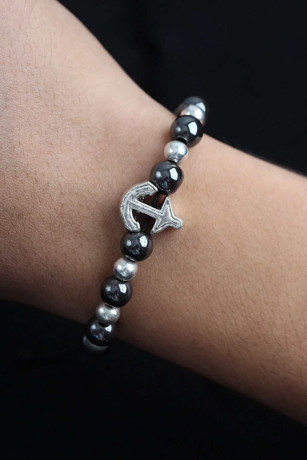 Dodes Dodes Doğal Taş Çapa Model Gümüş Ve Füme Renk Asansörlü Erkek Bileklik TG27EB3762