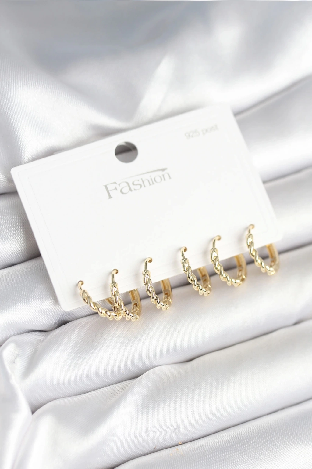Dodes Dodes Gold Renk Burgu Halka Model 925 Ayar Gümüş Çivili Pirinç Küpe Seti TG27BKP11268