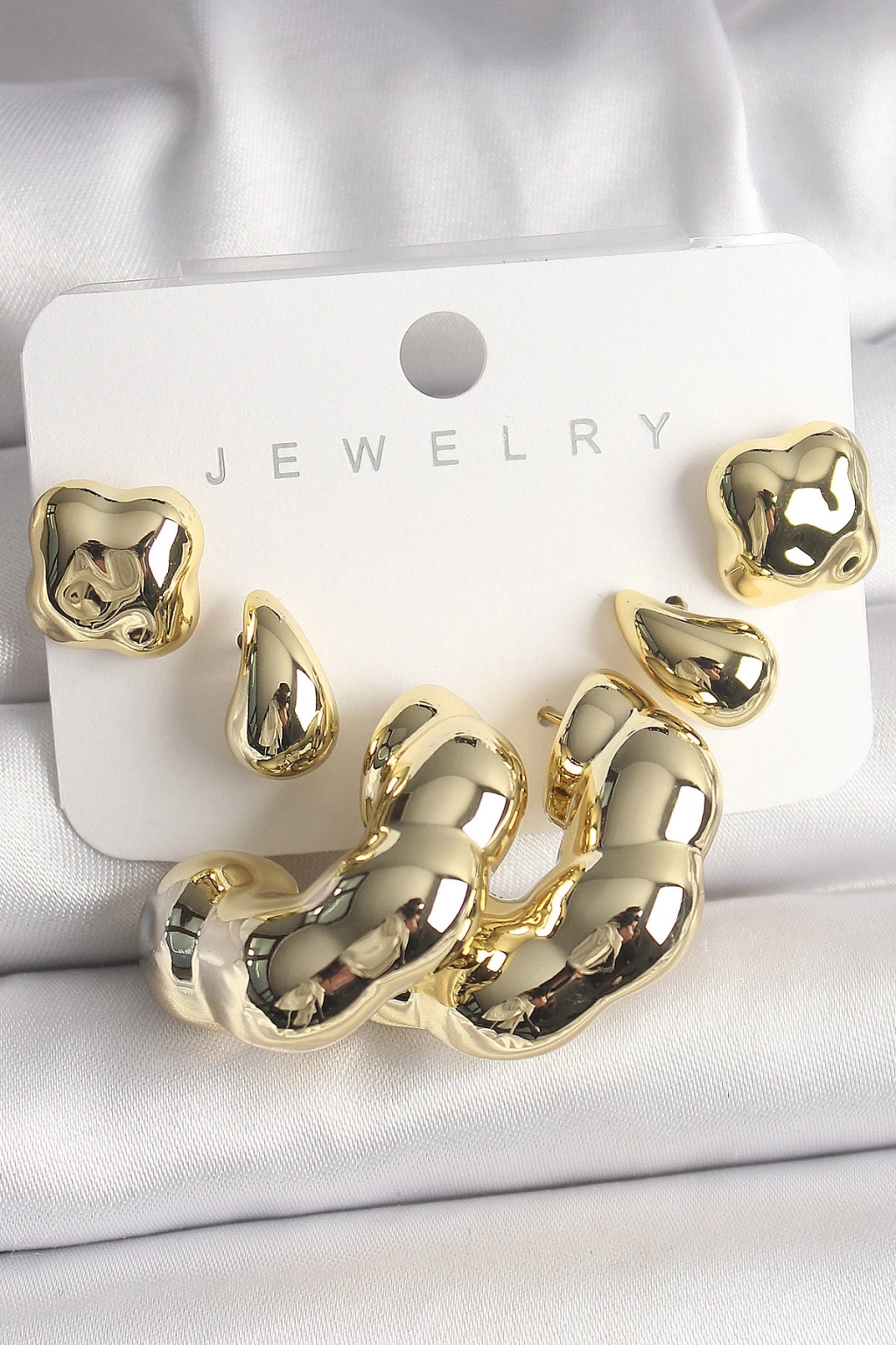 Dodes Dodes Gold Renk Yonca Damla Halka Model CCB Plastik Kadın Küpe Seti TG27BKP10028
