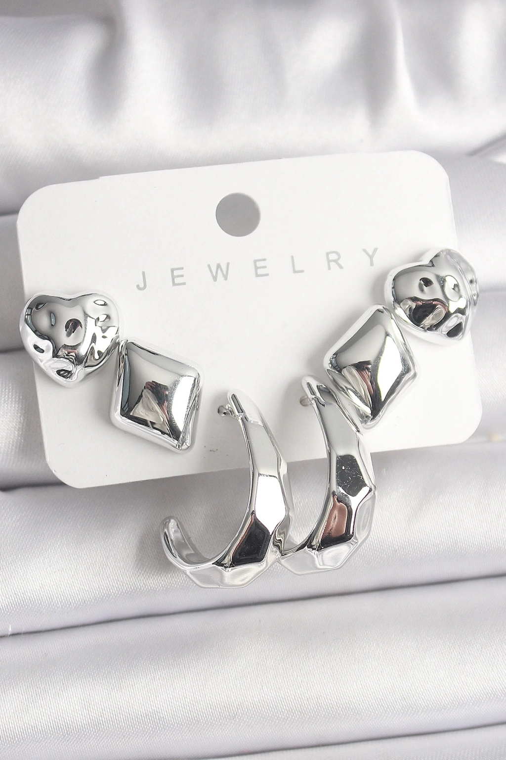 Dodes Dodes Gümüş Renk Kalp Halka Figür CCB Plastik Kadın Küpe Seti TG27BKP10023