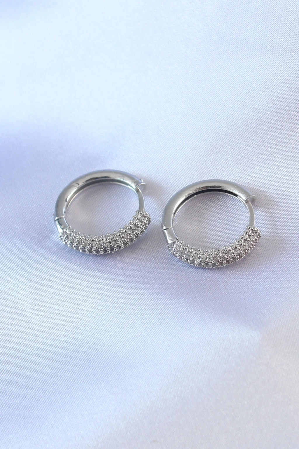 Dodes Dodes Gümüş Renk Zirkon Taşlı Halka Model Pirinç Kadın Küpe TG27BKP7856