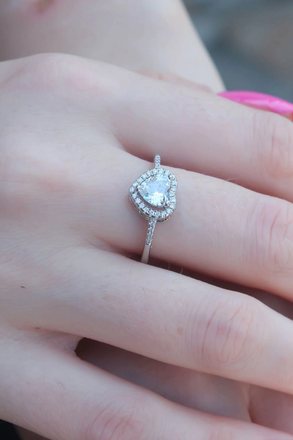 Dodes Dodes Gümüş Renk Zirkon Taşlı Kalp Model Charm Pirinç Kadın Yüzük TG27BYK2655