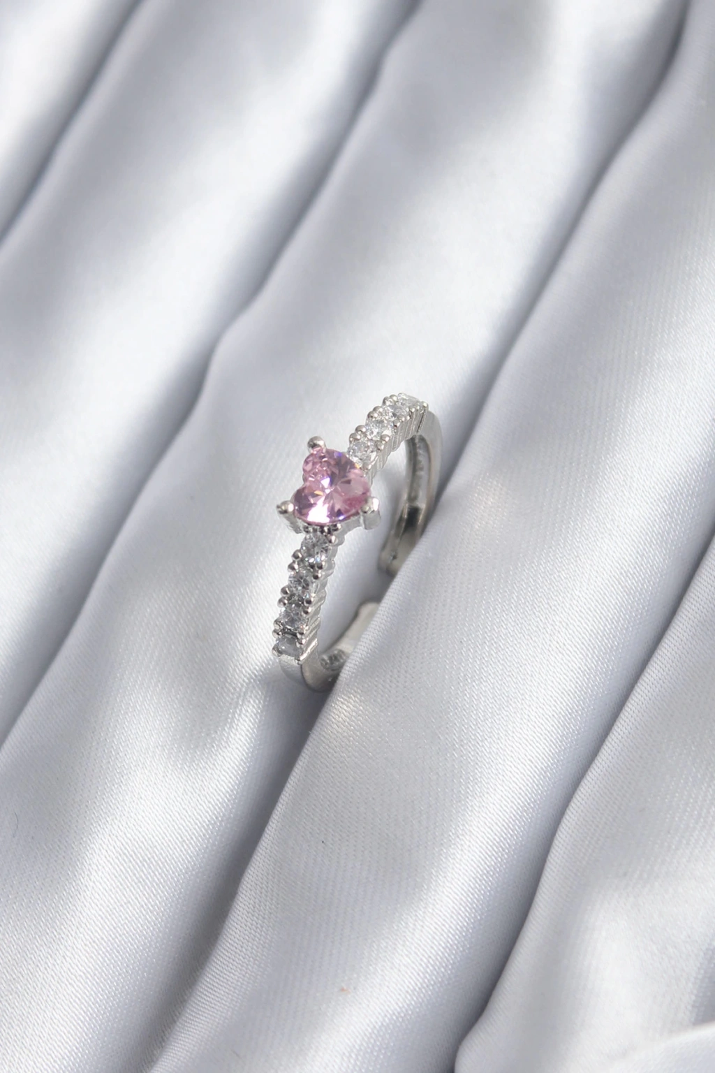 Dodes Dodes Gümüş Renk Zirkon Taşlı Pembe Kristal Kalp Model Kadın Yüzük TG27BYK2851
