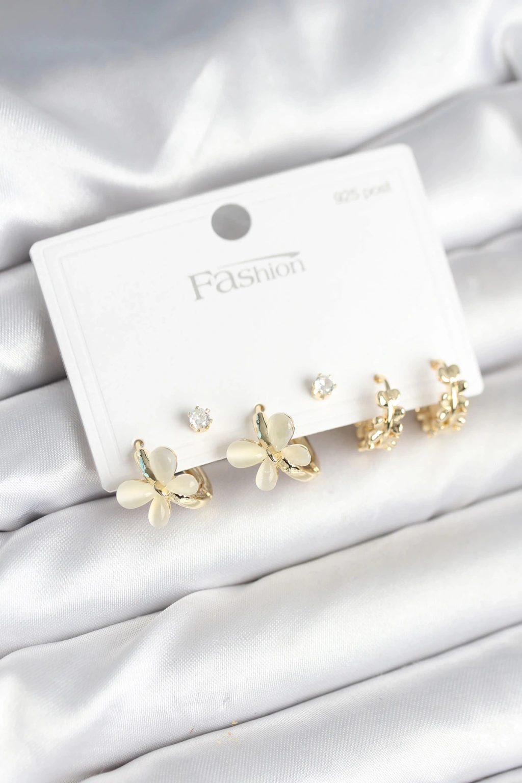 Dodes Dodes Kelebek Model Gold Renk Pirinç 925 Ayar Gümüş Çivili Kadın Küpe Seti TG27BKP11271
