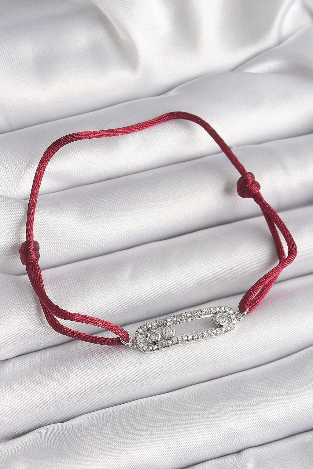Dodes Dodes Kırmızı İpli Asansörlü Zirkon Taşlı Gümüş Messika Model Kadın Bileklik TG27BB6582