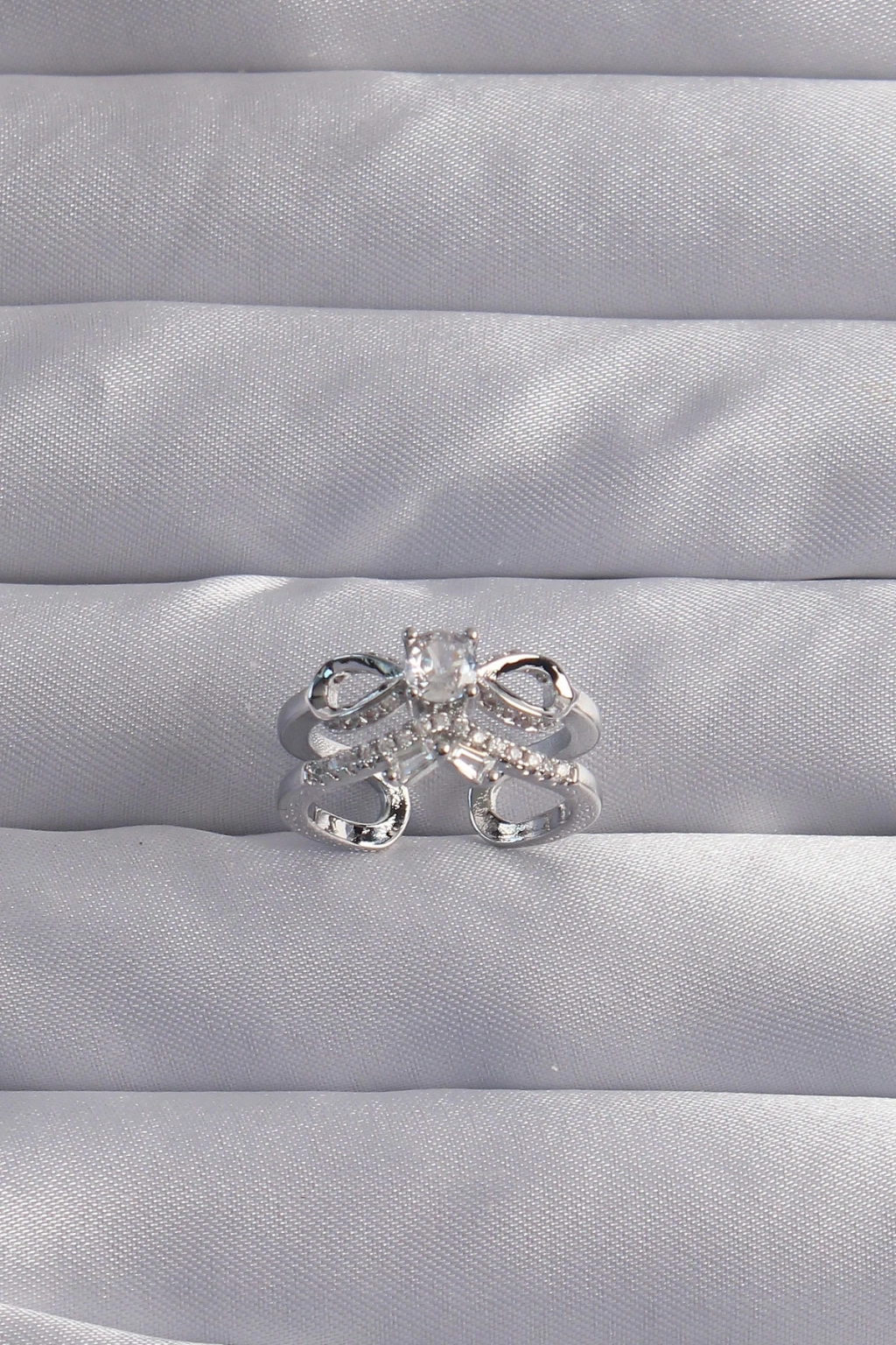Dodes Dodes Pirinç Ayarlamalı Gümüş Renk Zirkon Taşlı 2li Görünüm Fiyonk Yüzük TG27BYK3288