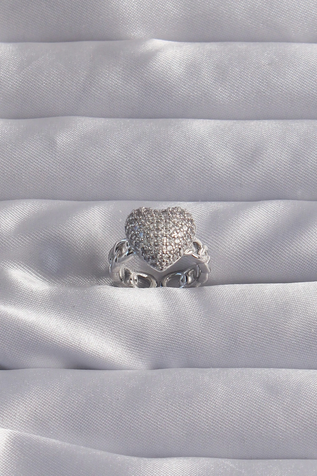 Dodes Dodes Pirinç Ayarlamalı Gümüş Renk Zirkon Taşlı Bombeli Kalp Yüzük TG27BYK3282
