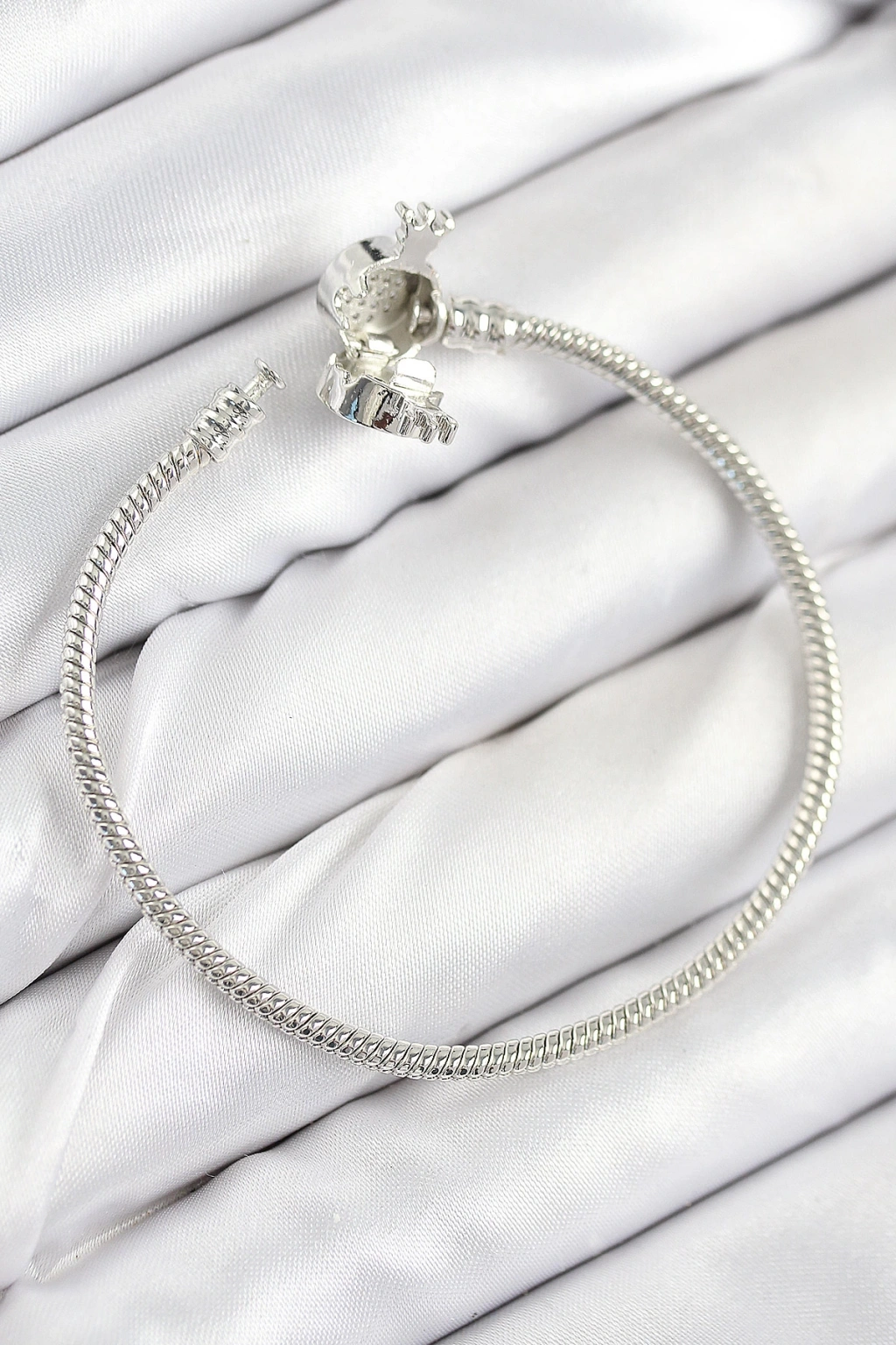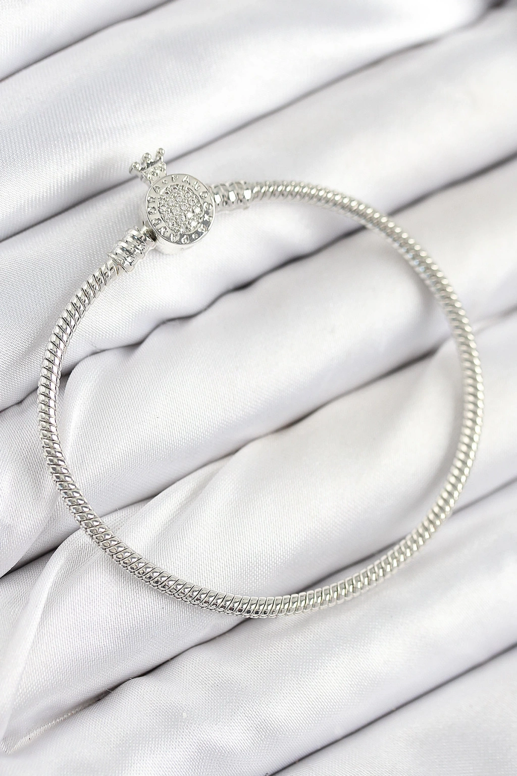 Dodes Dodes Pirinç Charm Zirkon Taşlı Taç Model Gümüş Renk Kadın Bileklik TG27BB7802