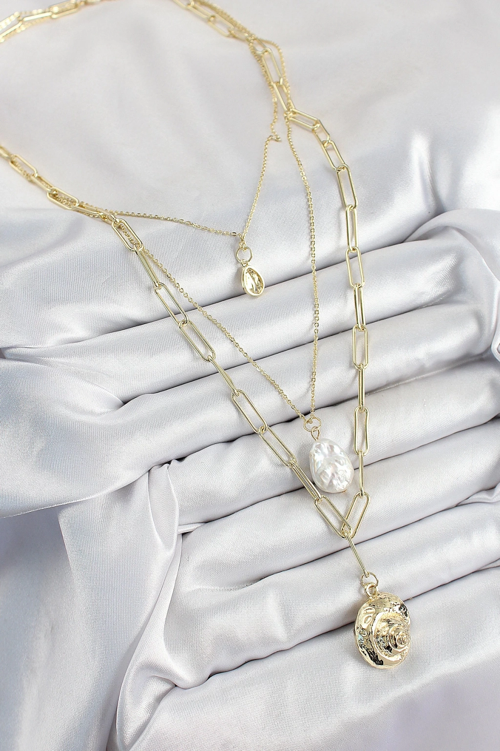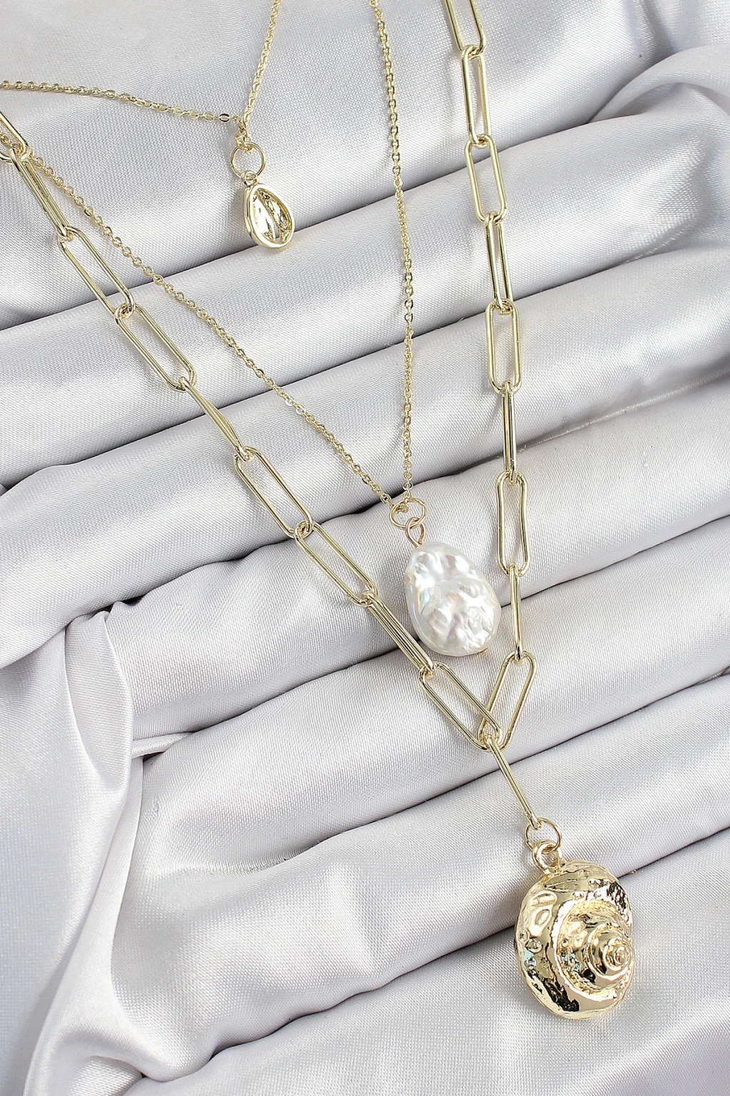 Dodes Dodes Pirinç Çoklu Zincirli İncili Deniz Kabuğu Model Gold Renk Kadın Kolye TG27BKO10370